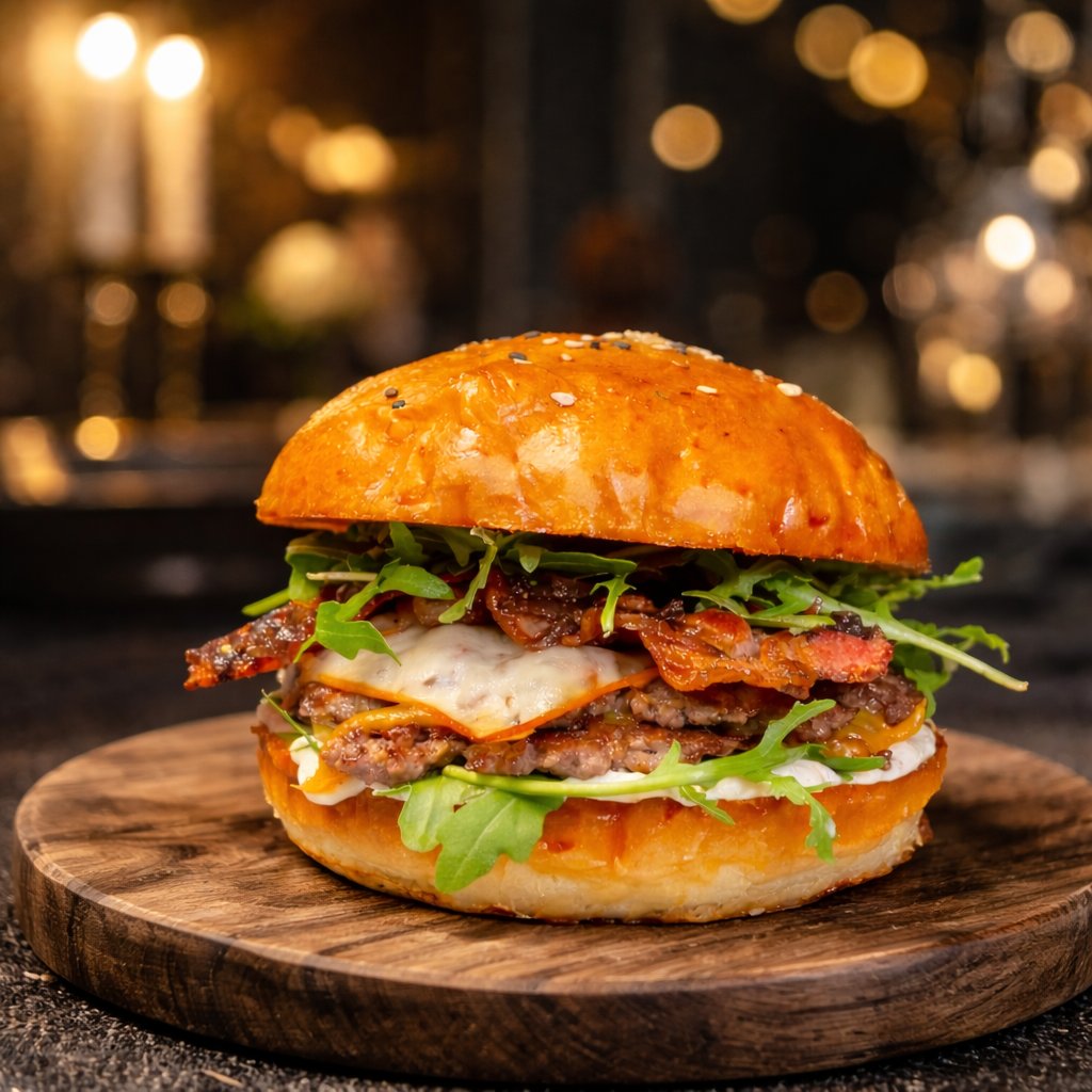 Náš Signature se skládá z 2 smash masa chuck rollu, domácí brown butter mayo, marinované rukoly , slaniny v home onion black pepper caramel chutney, uzený eidam, red cheddar. To vše v dokonalé symfonii 🤤