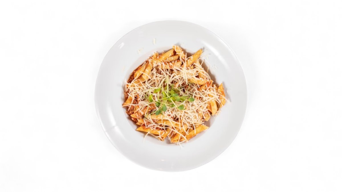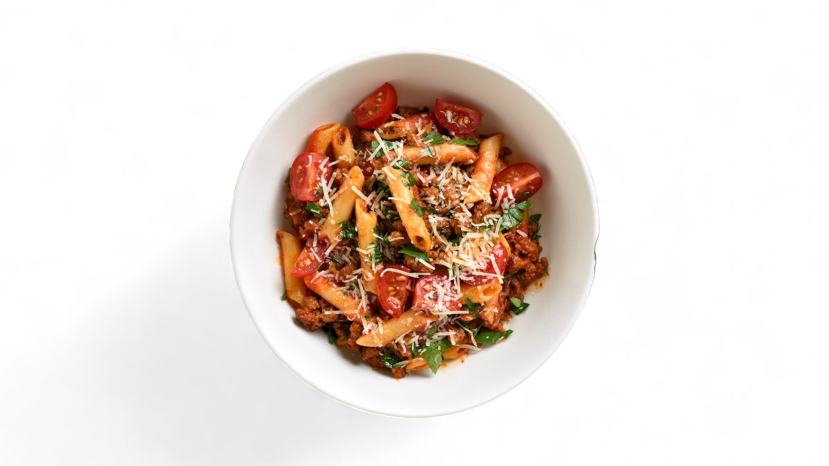 hovězí mleté maso, bílá omáčka, rajčata, parmazán