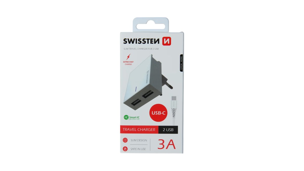 SWISSTEN Nabíječka 2x USB 3A + USB-C kabel