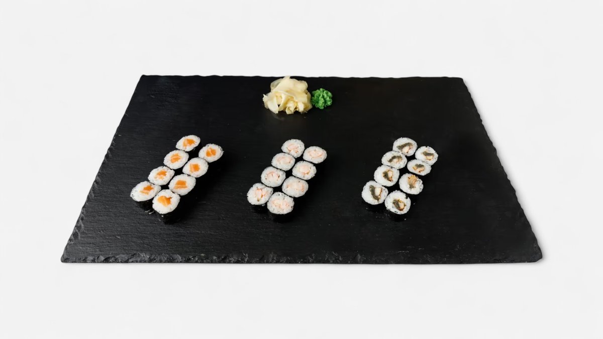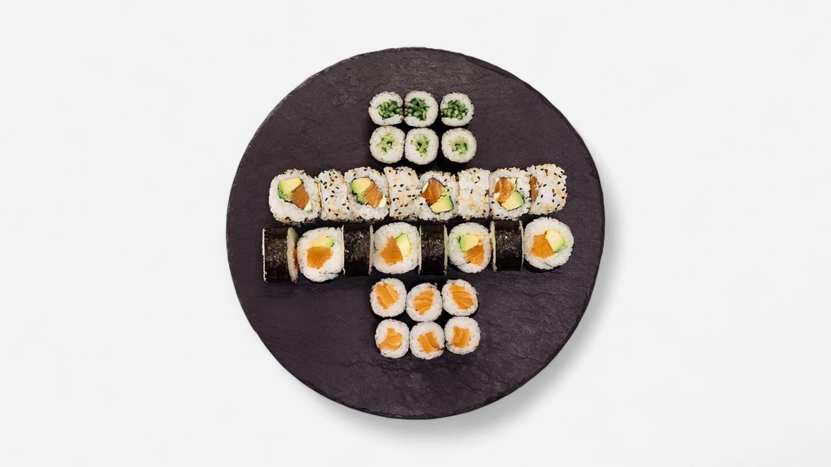 ROLLS: 8 ks sake NIGRI: 2 ks losos, 2 ks avokádo MAKI: 8 ks avokádo