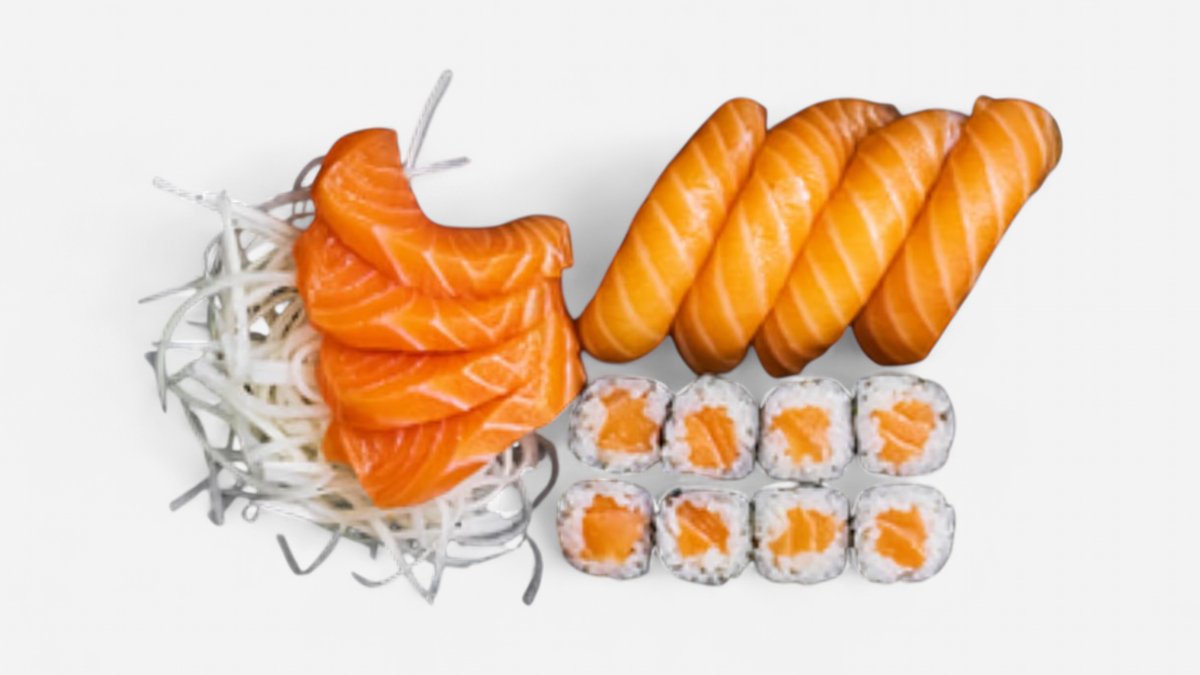 SASHIMI: 4 ks losos NIGRI: 4 ks losos MAKI: 8 ks losos