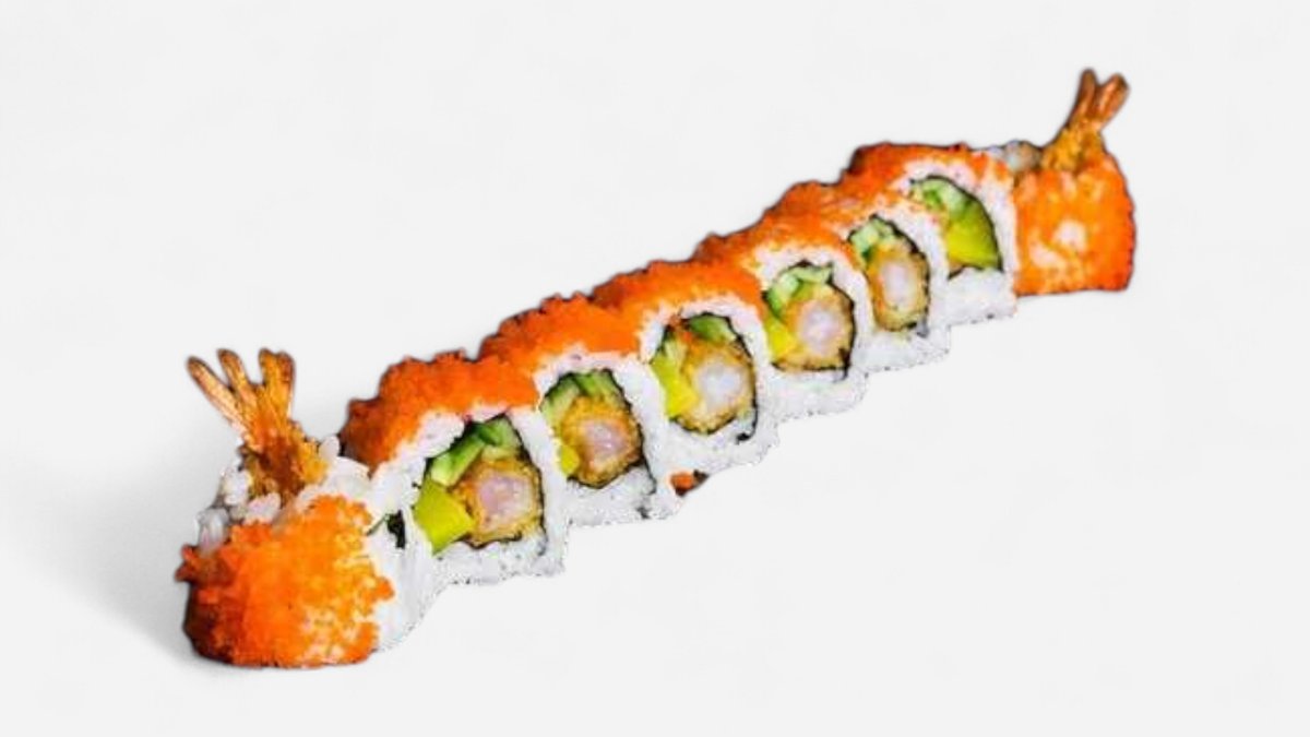 Sushi se smaženou krevetou, okurkou a nakládanou ředkví uvnitř, obalené v kaviáru 8ks