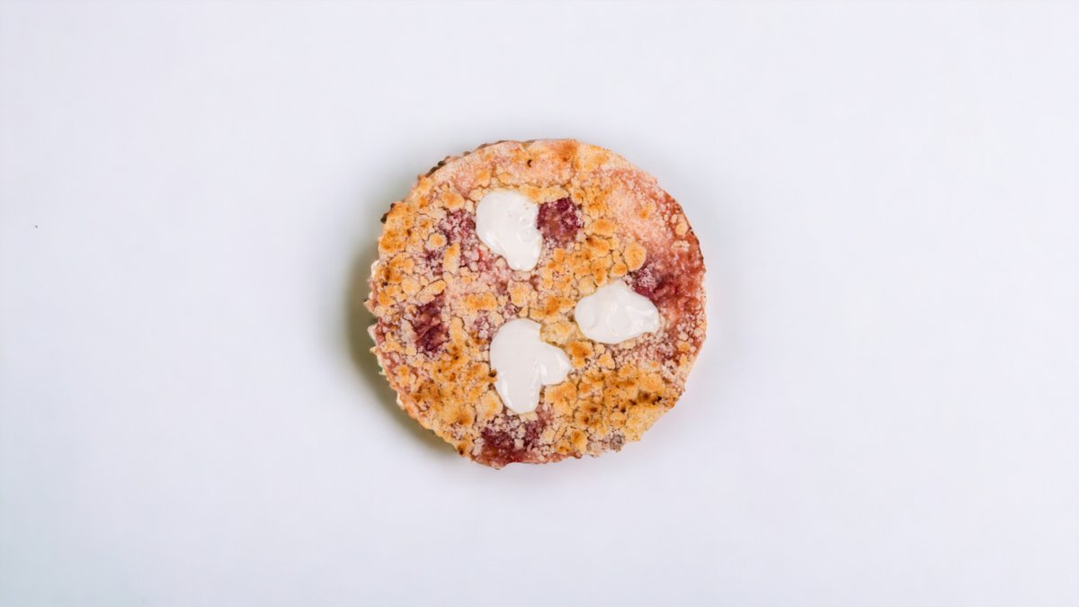jahodové pyré, jahody, tvaroh, drobenka, 34cm
