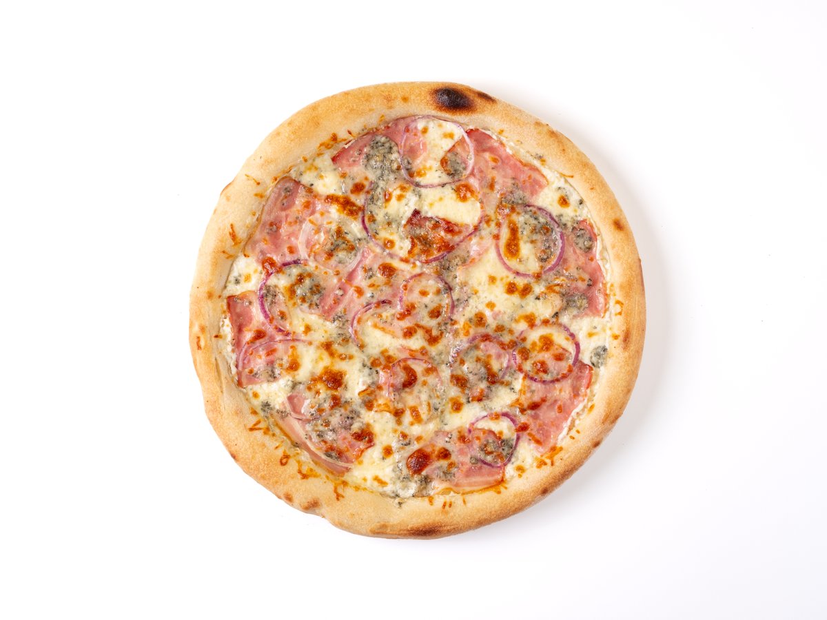 Bílý základ, mozzarella, salám, chorizo, cibule, mix sýrů (eidam a cheddar), niva, Chicago dip