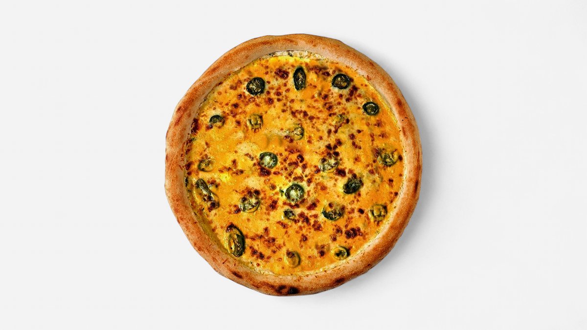 Bílý základ, mozzarella, salám, cibule, chilli, jalapeňo, niva