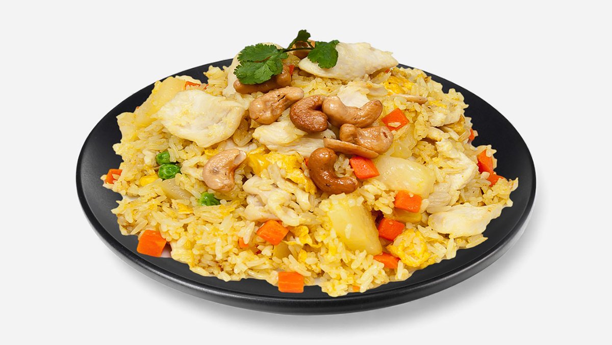 25.Smažená kari rýže s kuřecí masem a ananasem