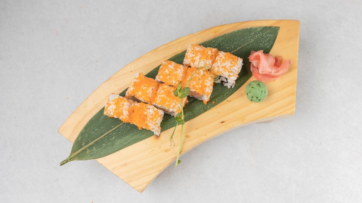 8ks maki losos, 2ks nigiri losos, 6ks smažené futomaki krevety, 8ks uramaki tobiko losos
