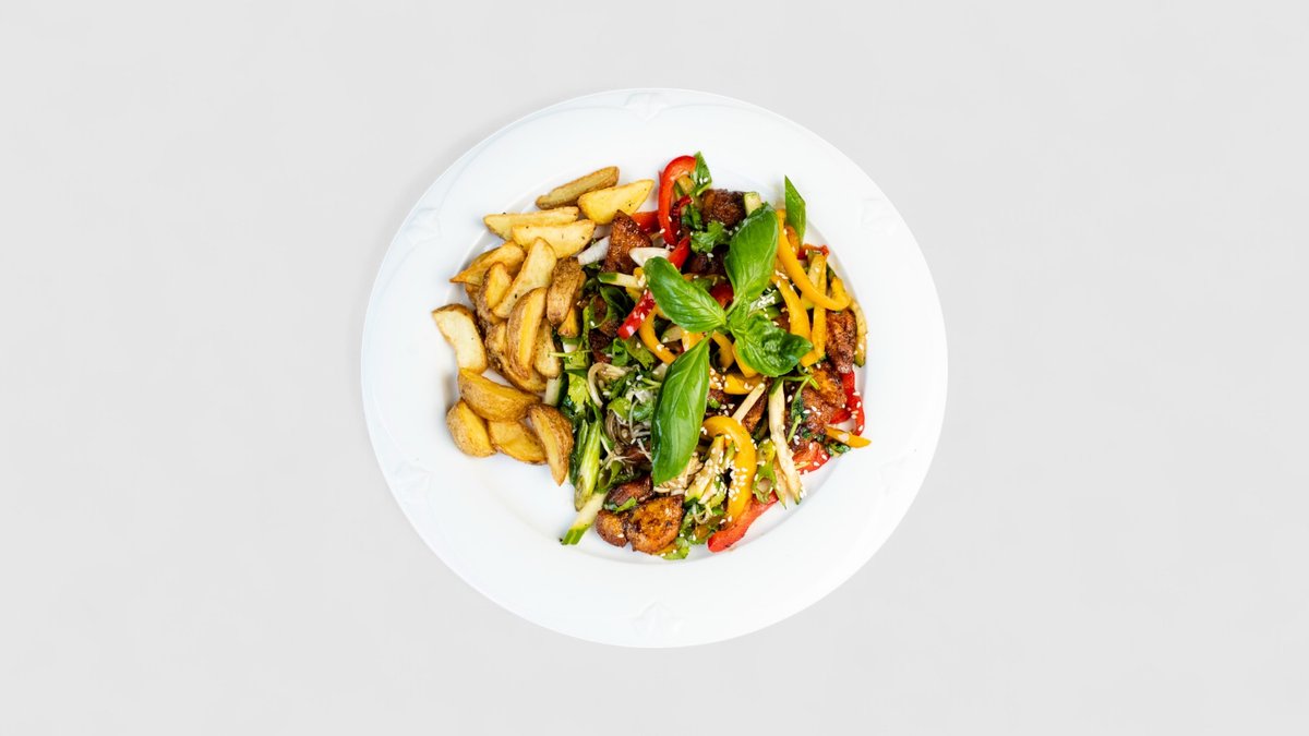 A2. Malý závitek, kachna s hranolky, zeleninový salát