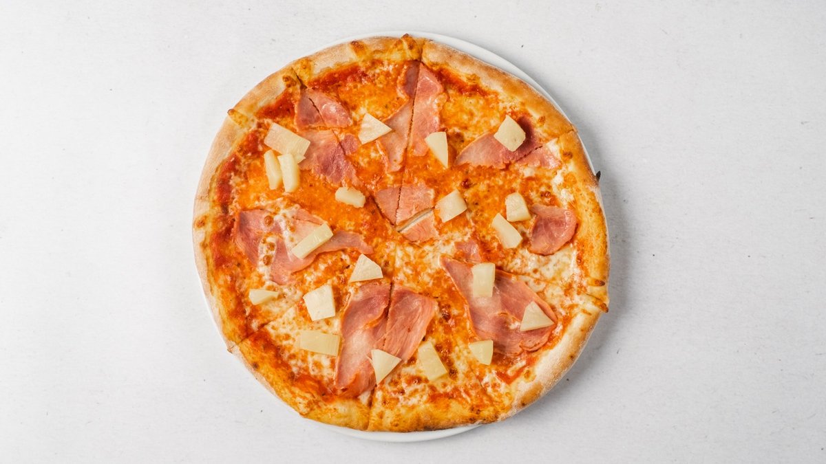 sugo, mozzarella, šunka, žampiony, olivy, oregáno - 1,7