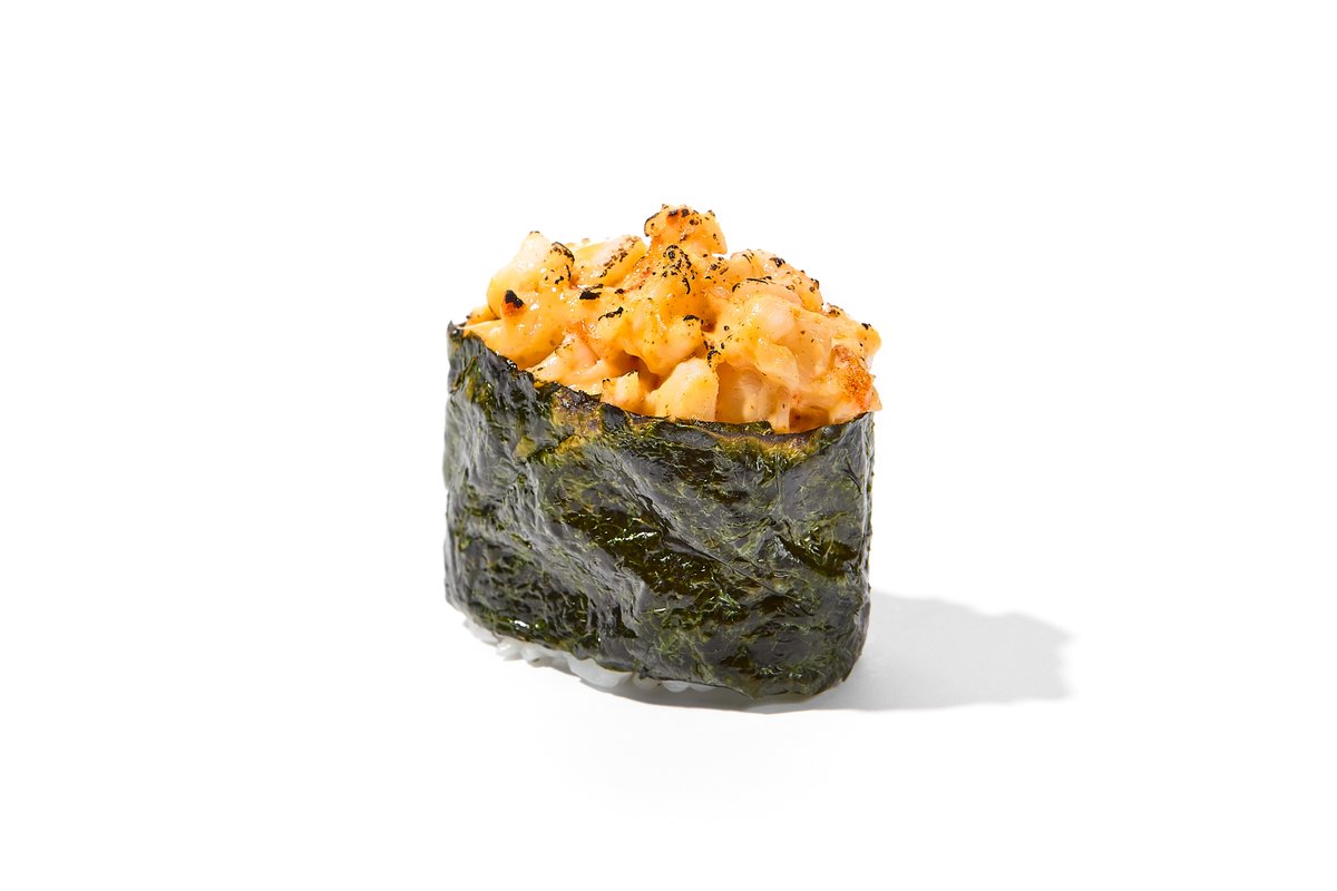 smažené sushi rolky plněné krevetami, avokádem, okurkou a sezamem, majonéza sohu