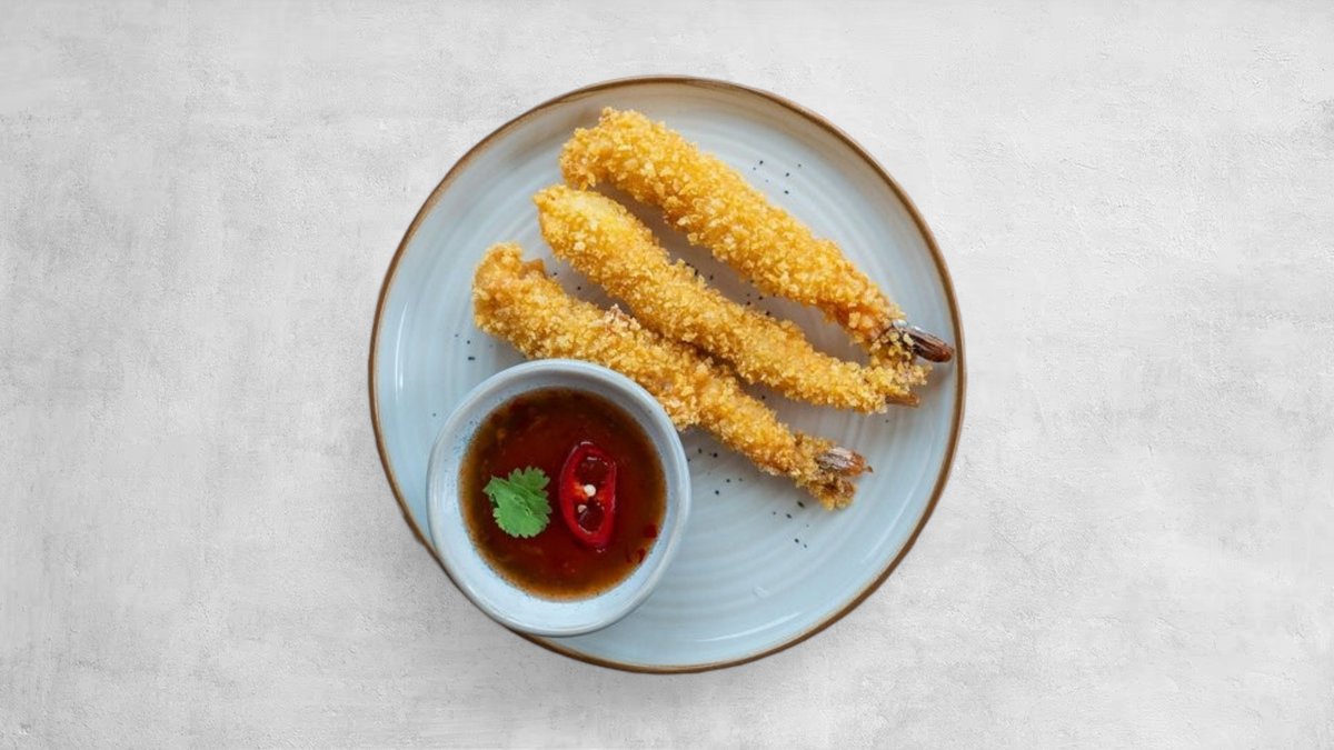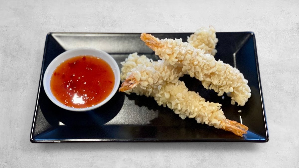 křupavé black tiger krevety s tempuře, podáváme s chilli majonézou
