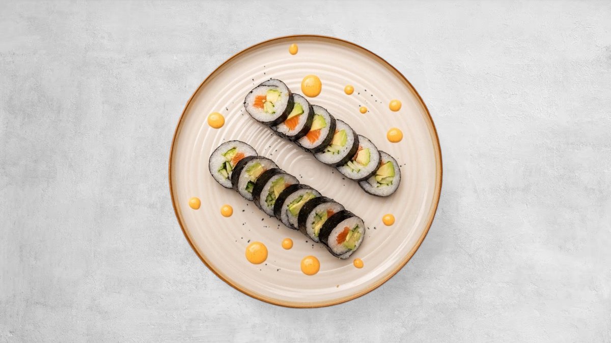 futomaki 12 ks (losos, avokádo, okurka, chilli mayo)
