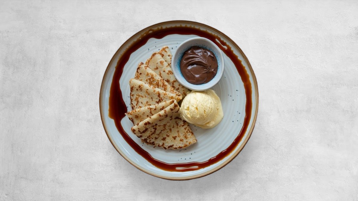 Palačinka s nutellou a vanilkovou zmrzlinou
