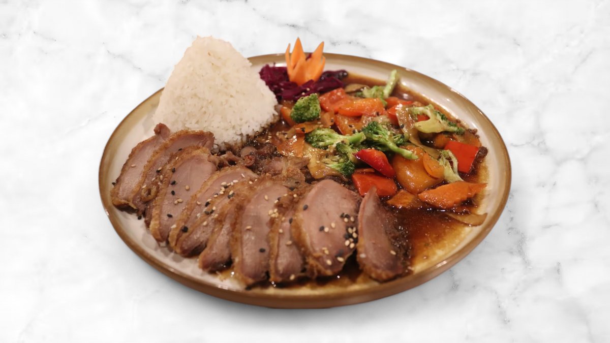 Kachní rýže nabízí úžasnou kombinaci chutí: přirozenou sladkost zeleniny, jemné bambusové výhonky, křupavou mrkev, čerstvou brokolici, papriku a bohatou chuť kachního masa skvěle doplňuje Chlad nakládaných okurek. Omáčka vše krásně propojí a vytvoří lahodný, požitkářský pokrm, který potěší všechny smysly.