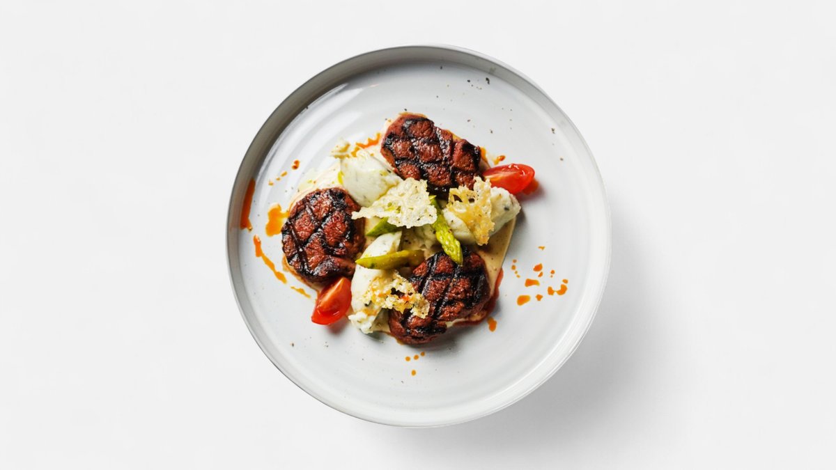 Beef tenderloin, truffle puree, cherry tomatoes, pepper sauce