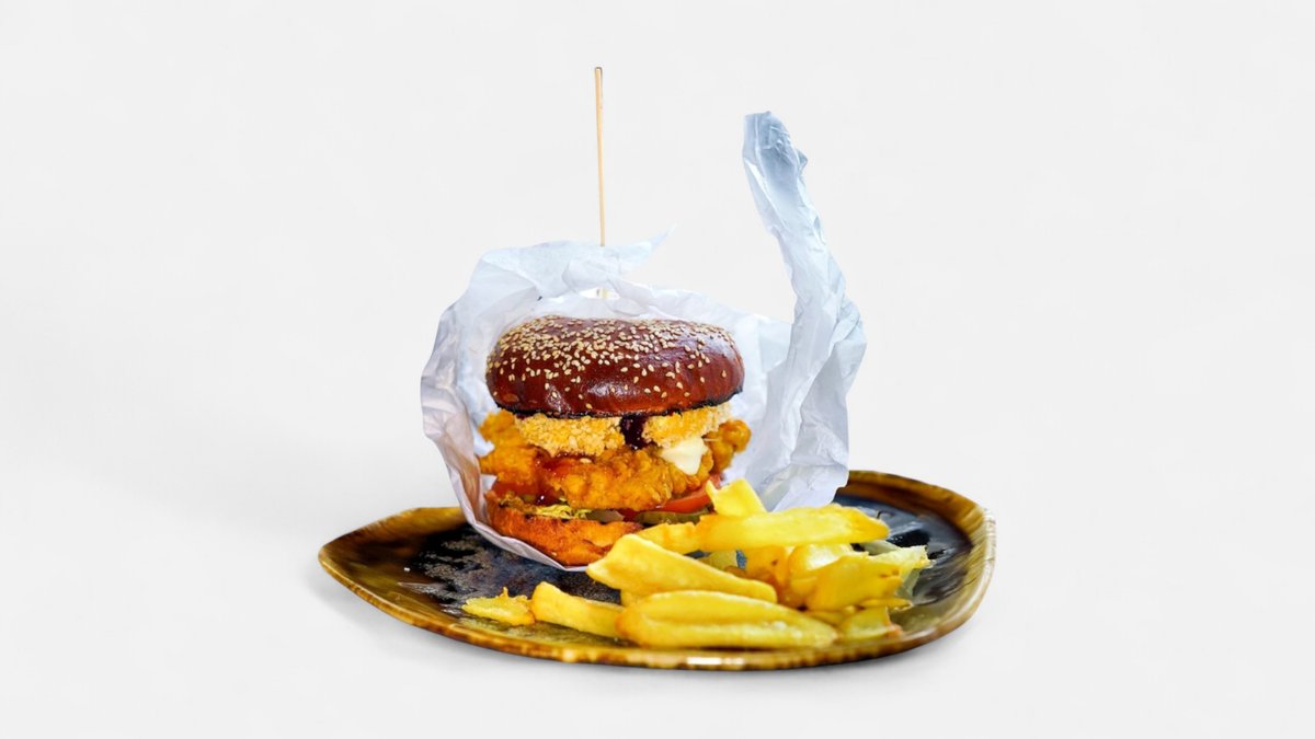 lettuce, chicken filet, tomatoes, pickles, camembert served with rustic fries