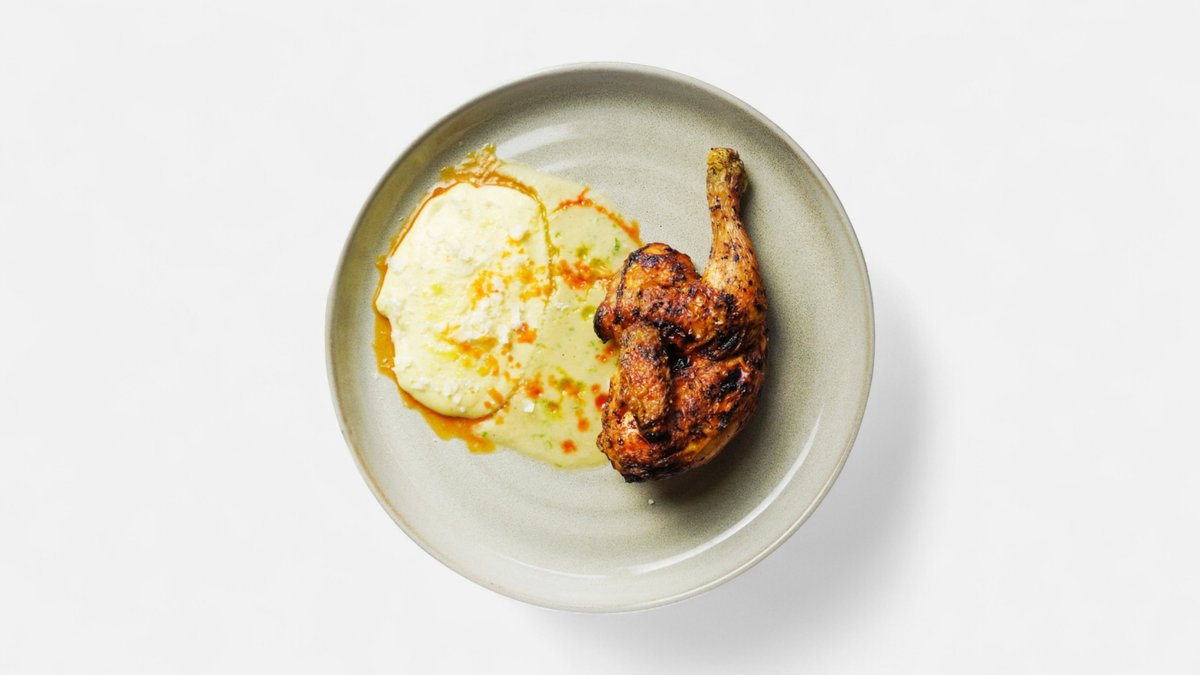 French chicken "Coquelet" served with parmesan polenta and sauce "Beurre Blanc"