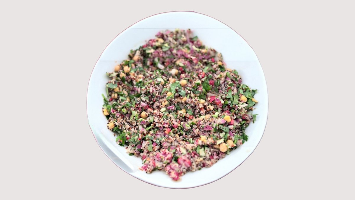 quinoa, okurka, paprika, cibule, cizrna, petržel, kariandr, 200g