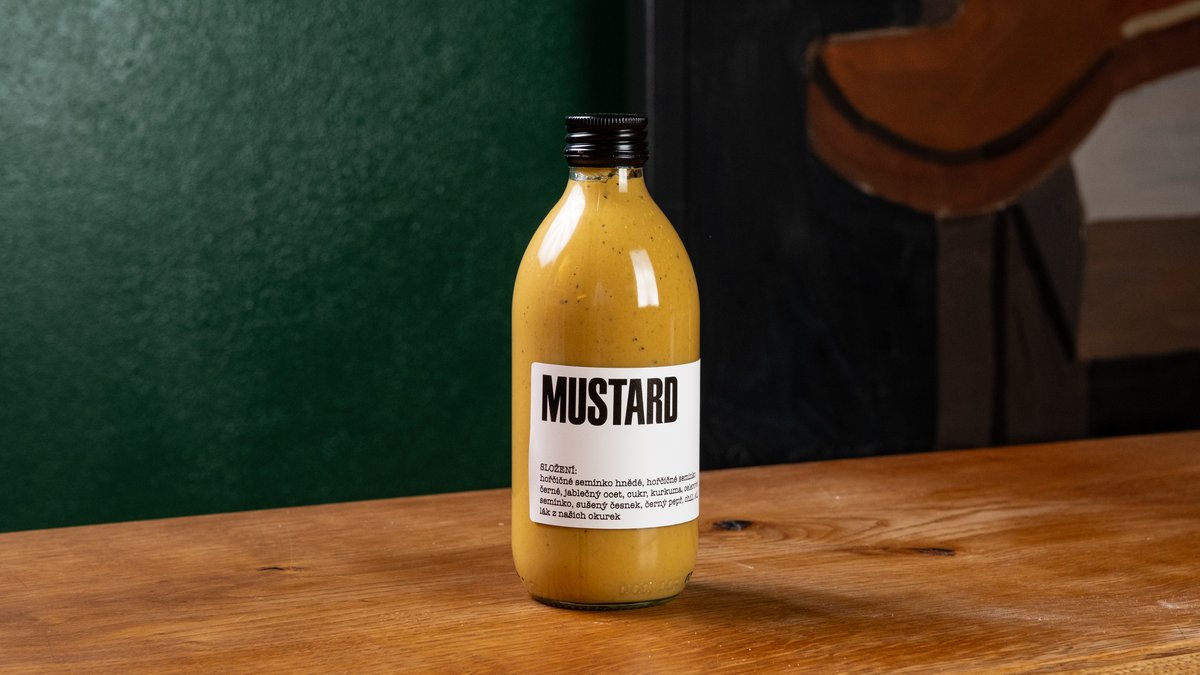 NAŠE MUSTARD BARBECUE OMÁČKA OBSAHUJE ŽLUTOU HOŘČICI, HOŘČIČNÉ SEMÍNKO, CELEROVÉ SEMÍNKO, OKURKOVÝ LÁK A DALŠÍ PŘÍSADY. VELIKOST: 0,3 L