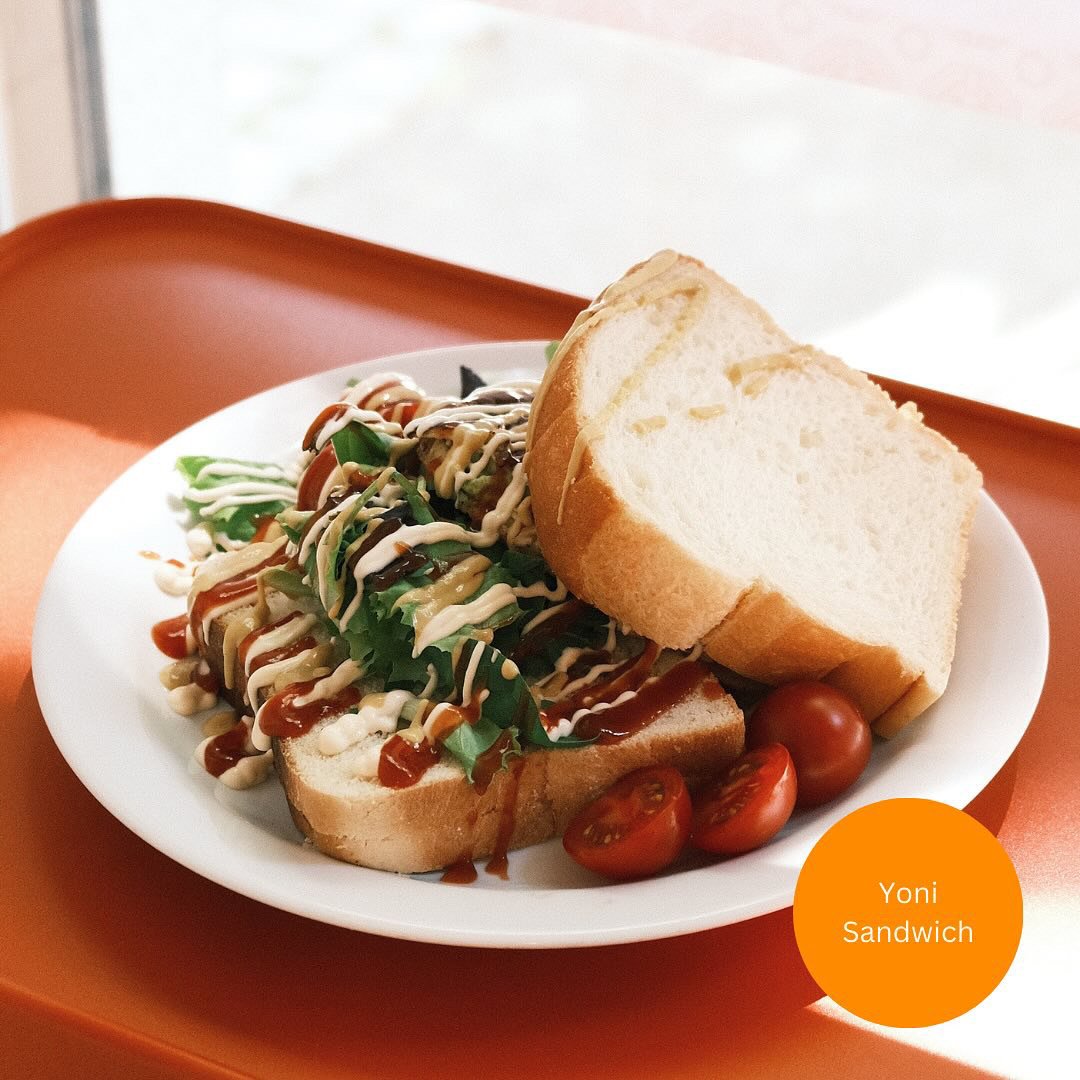 Milk bread, yoni’s special filling, mustard, ketchup, mayonnaise, sugar [1,3,7,10]