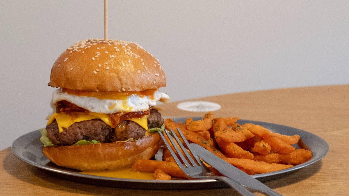 House-baked bun, homemade gochujang mayo, crisp Little Gem, Perfectly mixed meat patty, melted cheddar, tangy homemade kimchi,fried egg, and sweet potato fries. A korean fusion with a homemade touch.