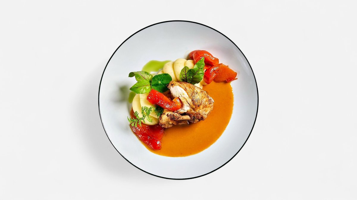 Kuřecí supreme s paprikovou omáčkou, pečená paprika, zauzená bramborová kaše A. 1,7,9