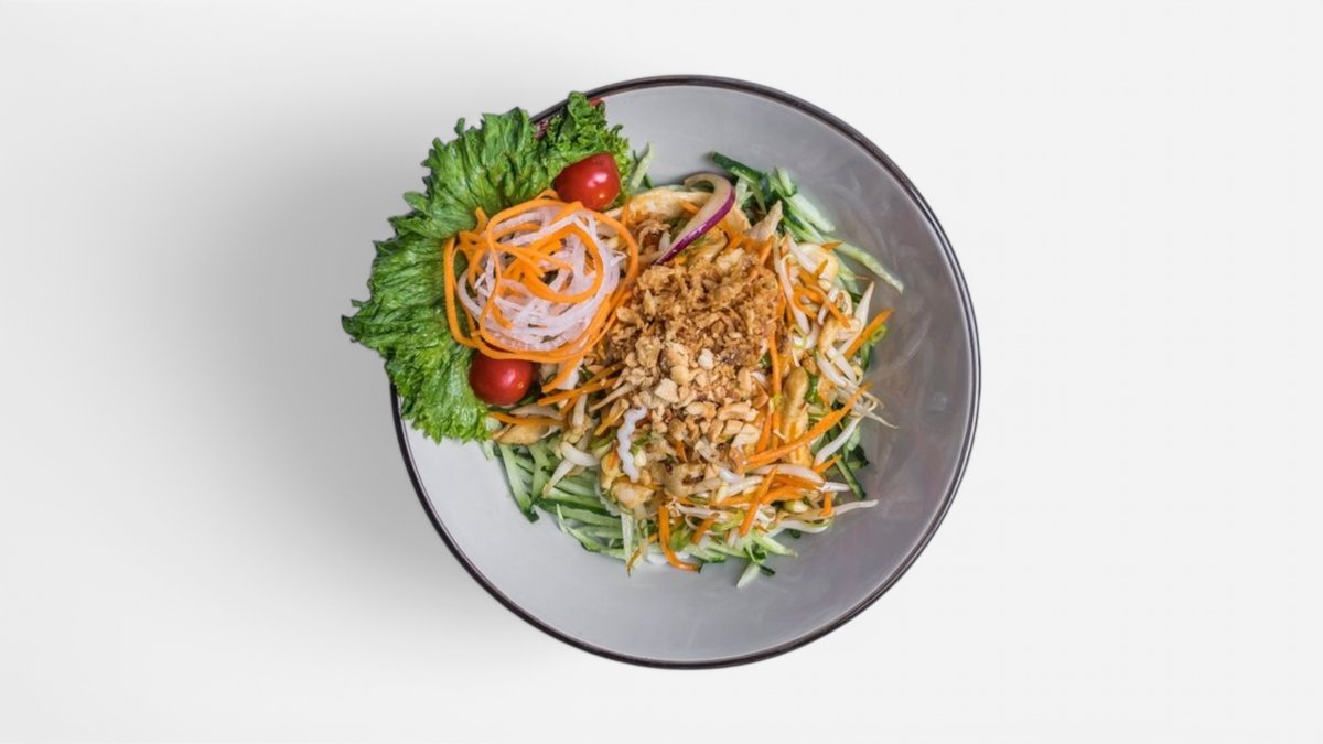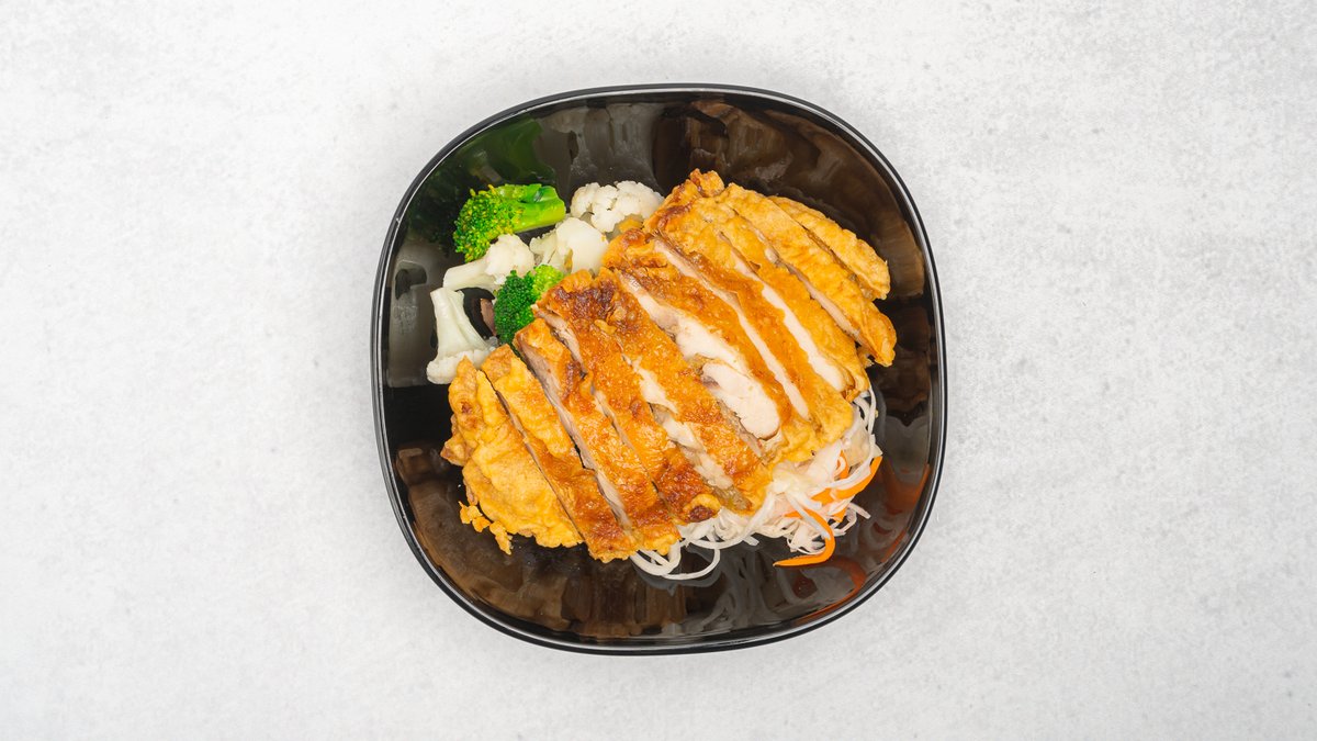 voňavá a křehká kuřecí plátky , čínský salát , pikantní polévka , bílá rýže