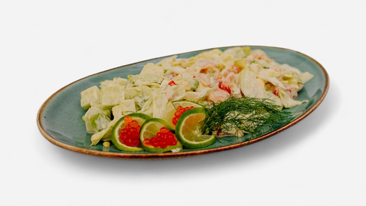 kuřecí prsa, majonéza, vejce, cibule, kopr, česnek +salát a omáčka 350g