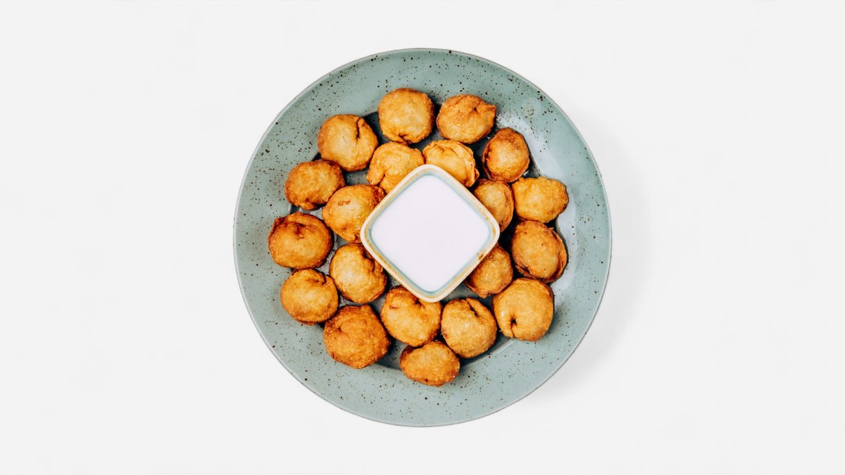 smažená cibulka, jogurtová omáčka