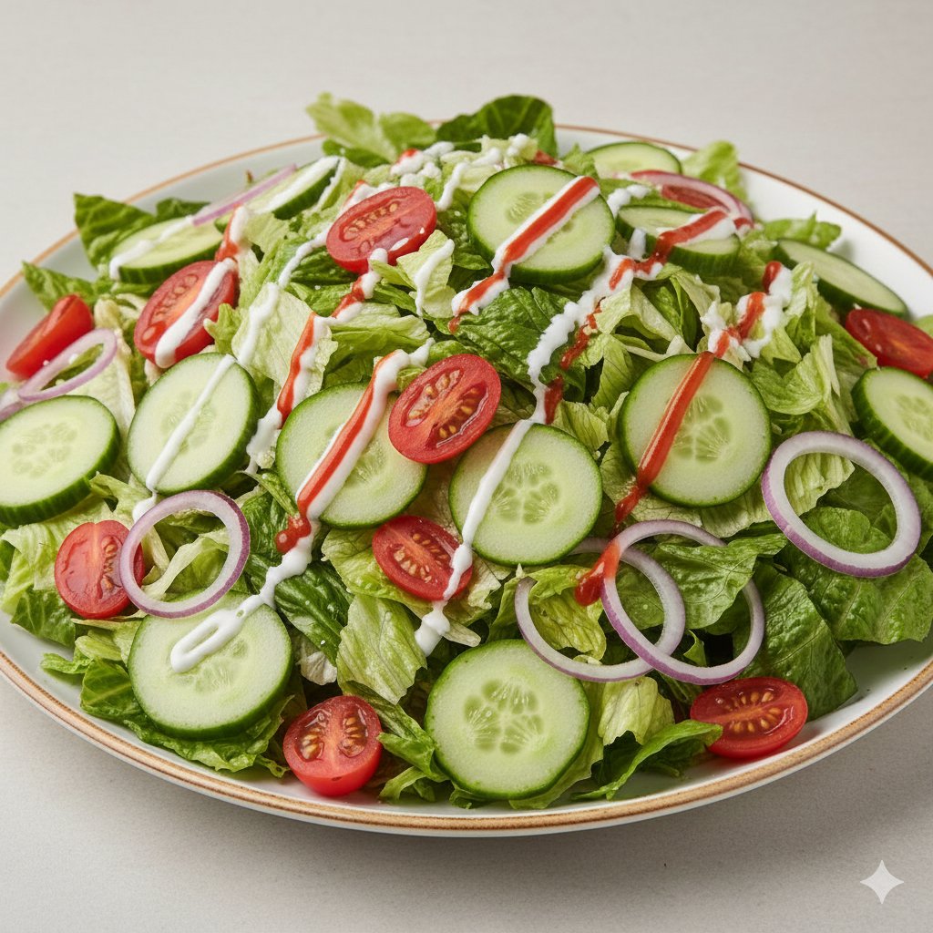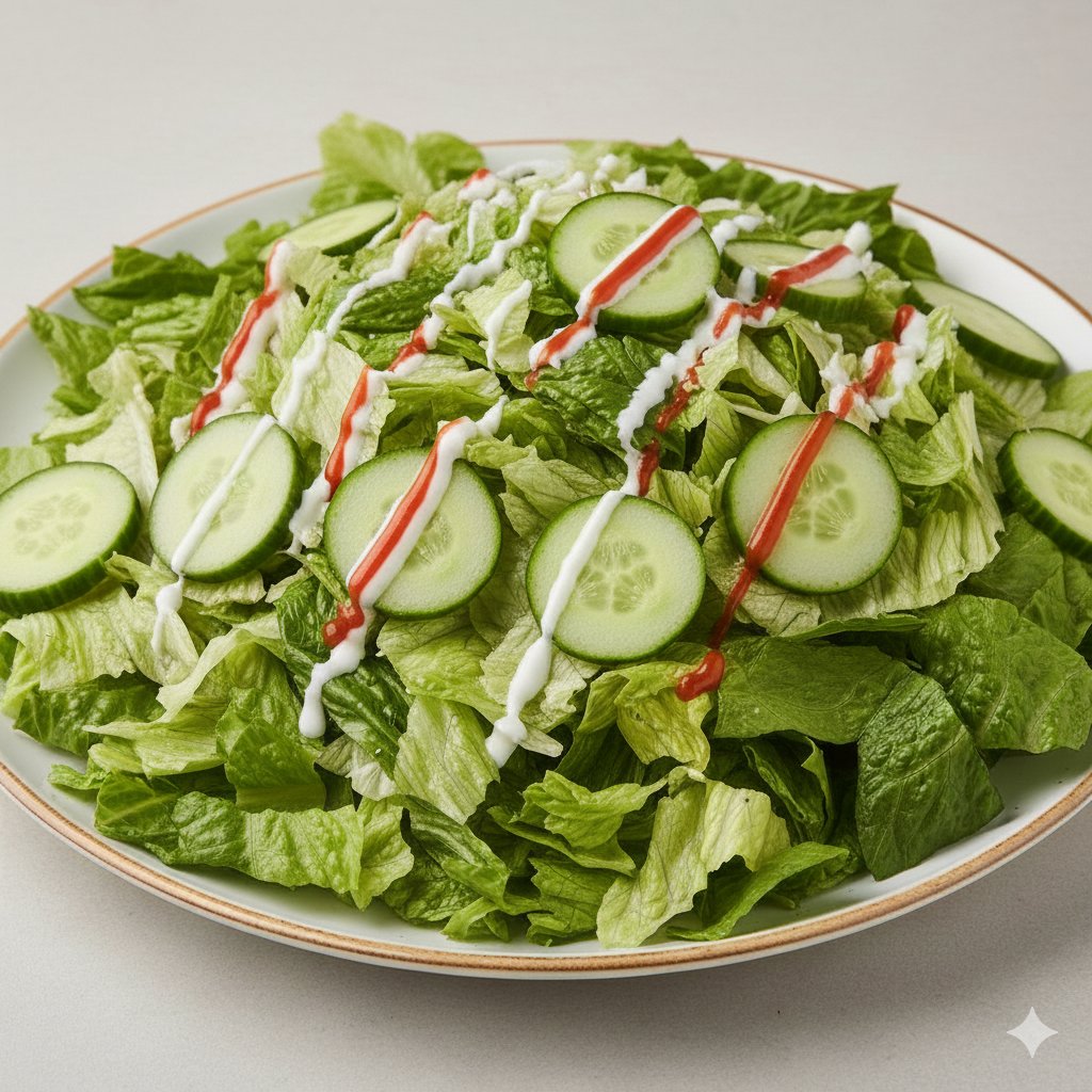 Ledový salát, okurka , rajčata ,dressing