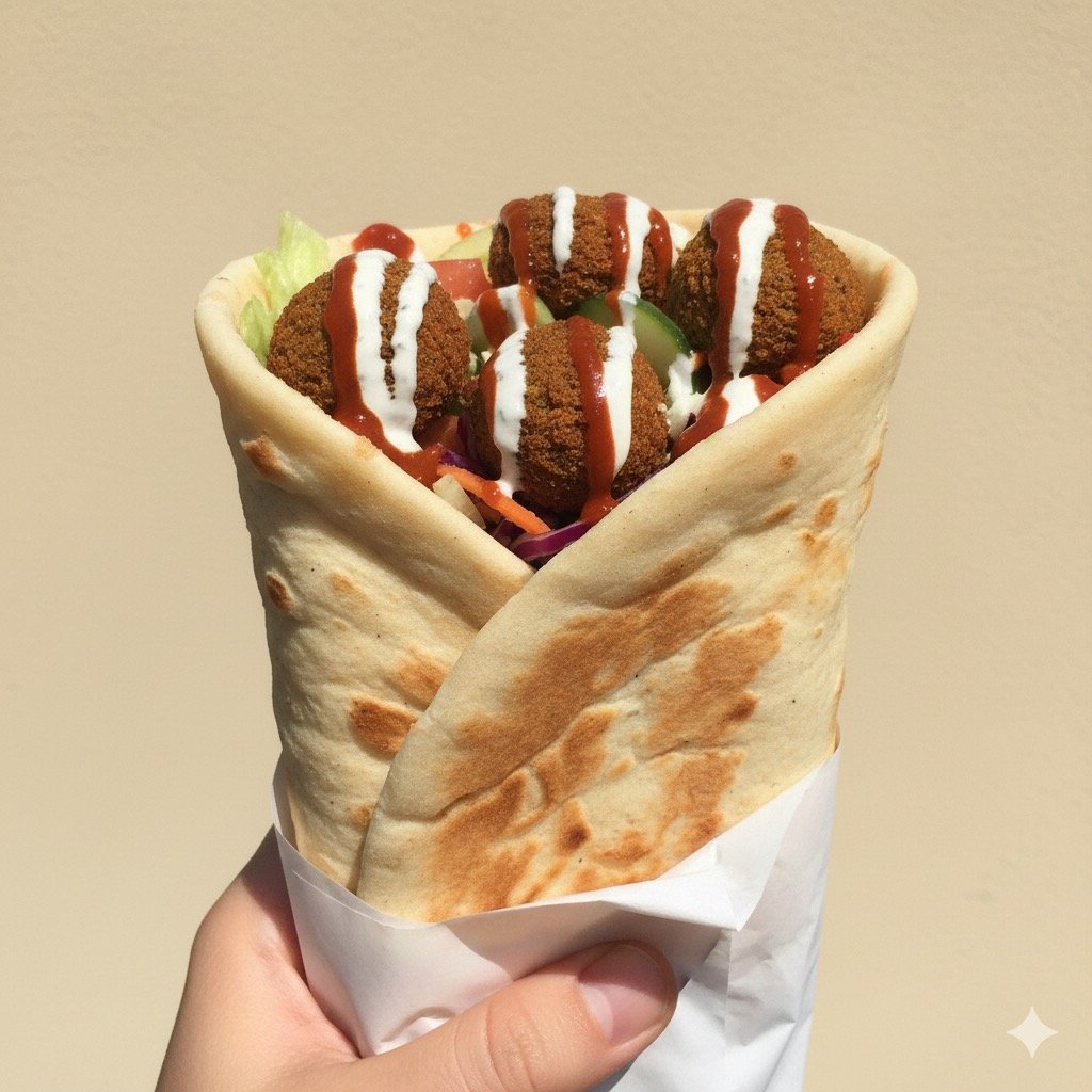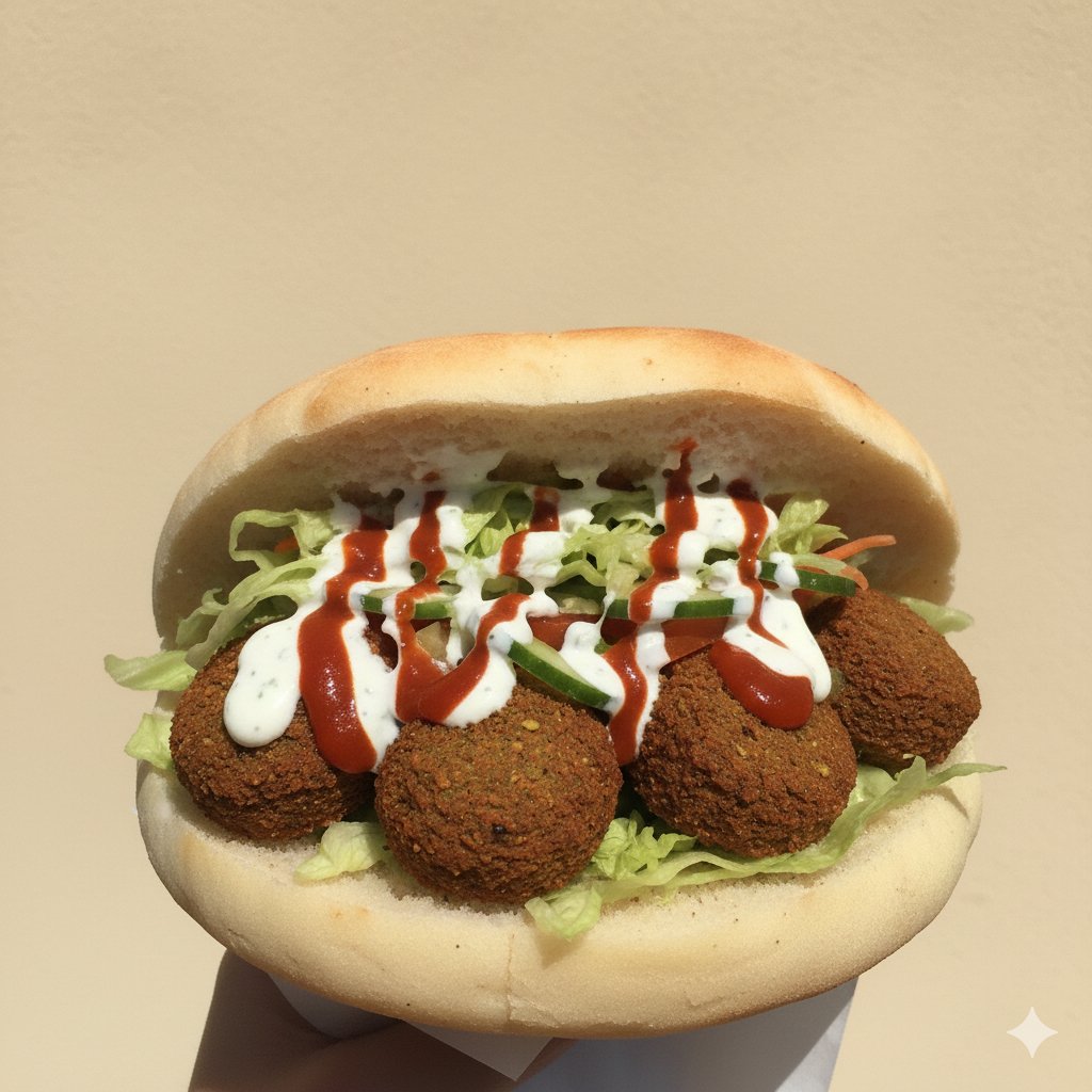 Toto jídlo je nejlepší volbou pro lidi, kteří milují vegetariány a vegany je to Domácí hummus, pět čerstvých kousků falafelu a turecký chléb.