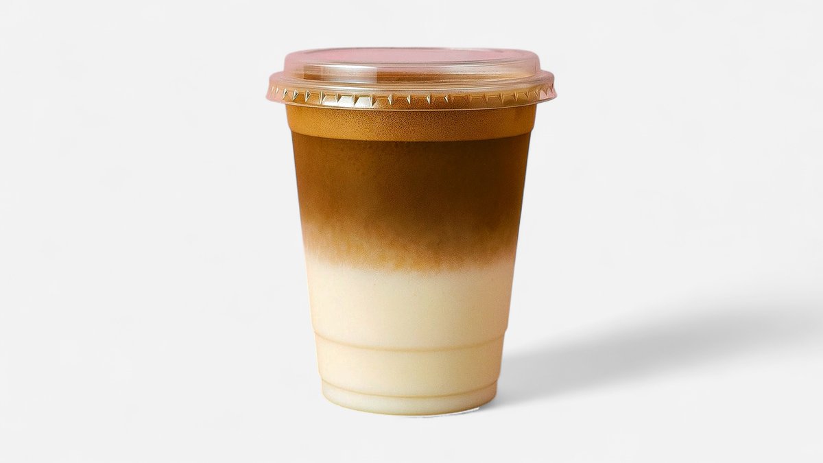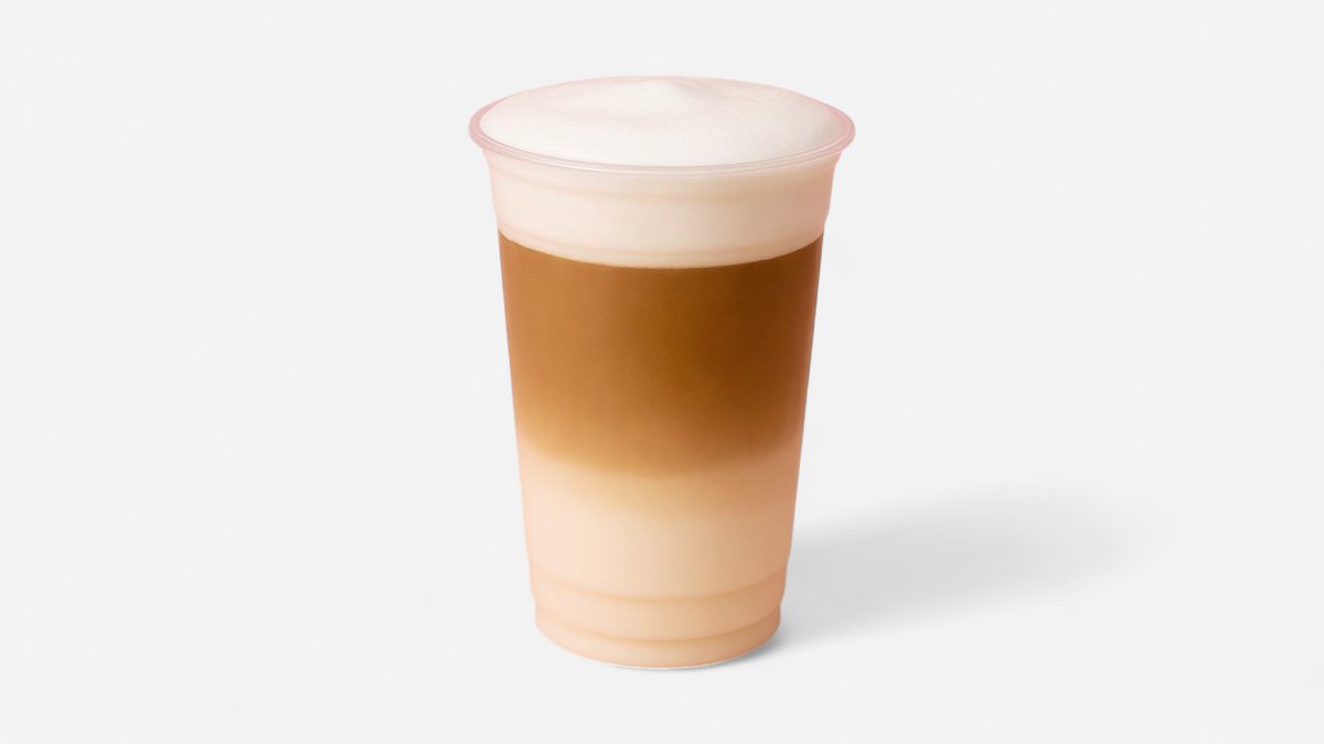 Mléčný základ s toppingem z hnědého cukru a šlehačkou