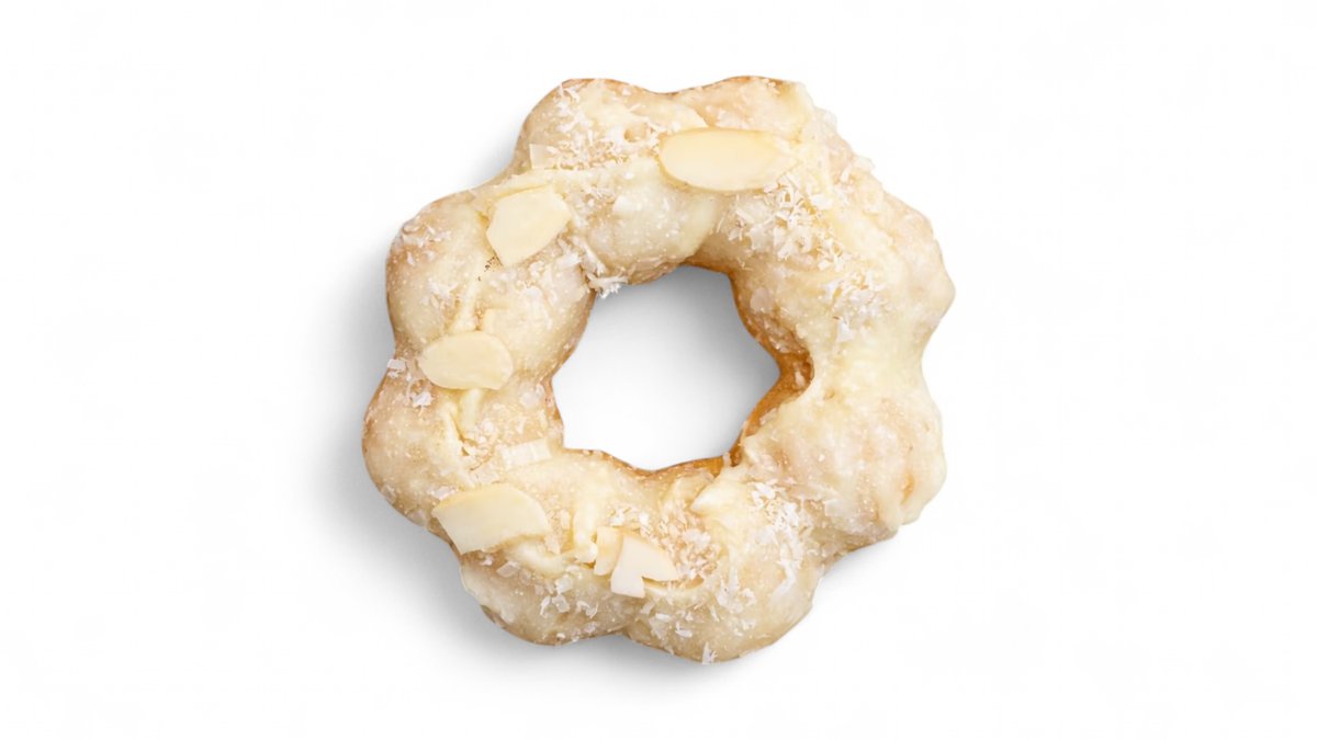 Mochi donut with milk chocolate, peanuts and salted caramel