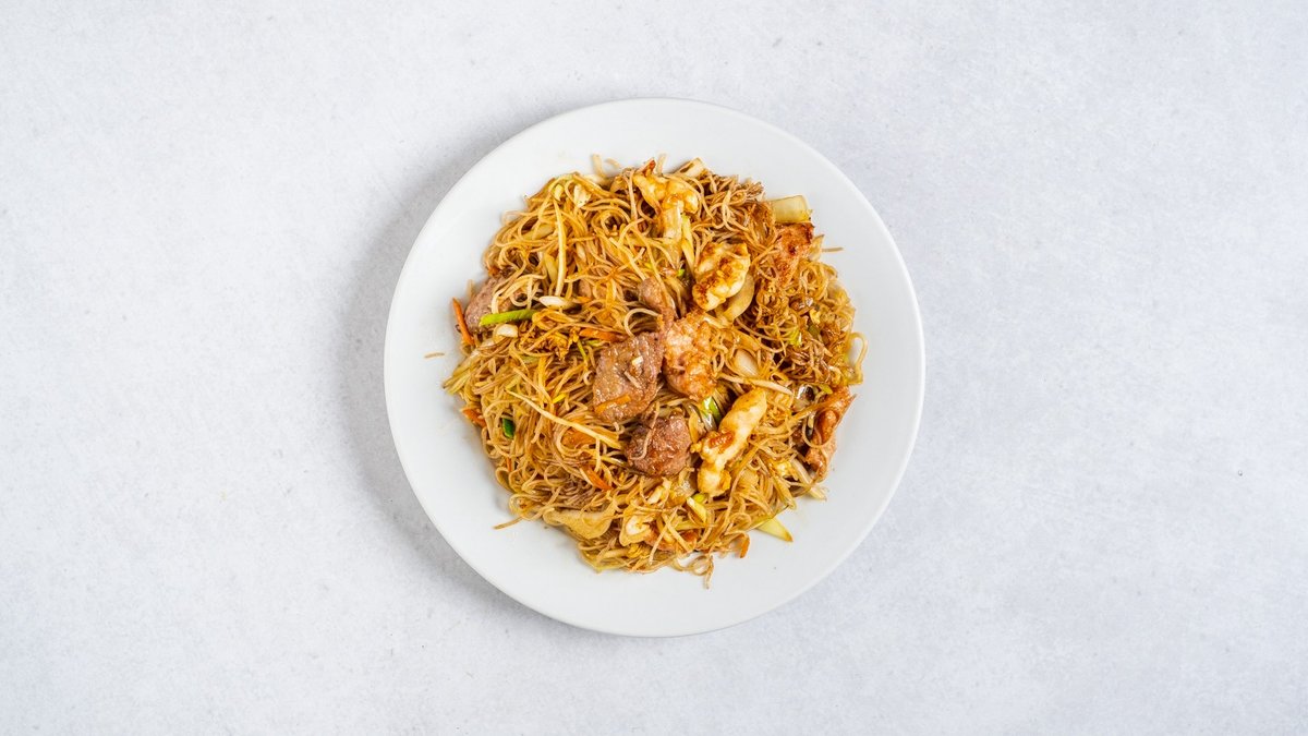 W50. Smažené rýžové nudle Hong-Kong s kuřecí masem