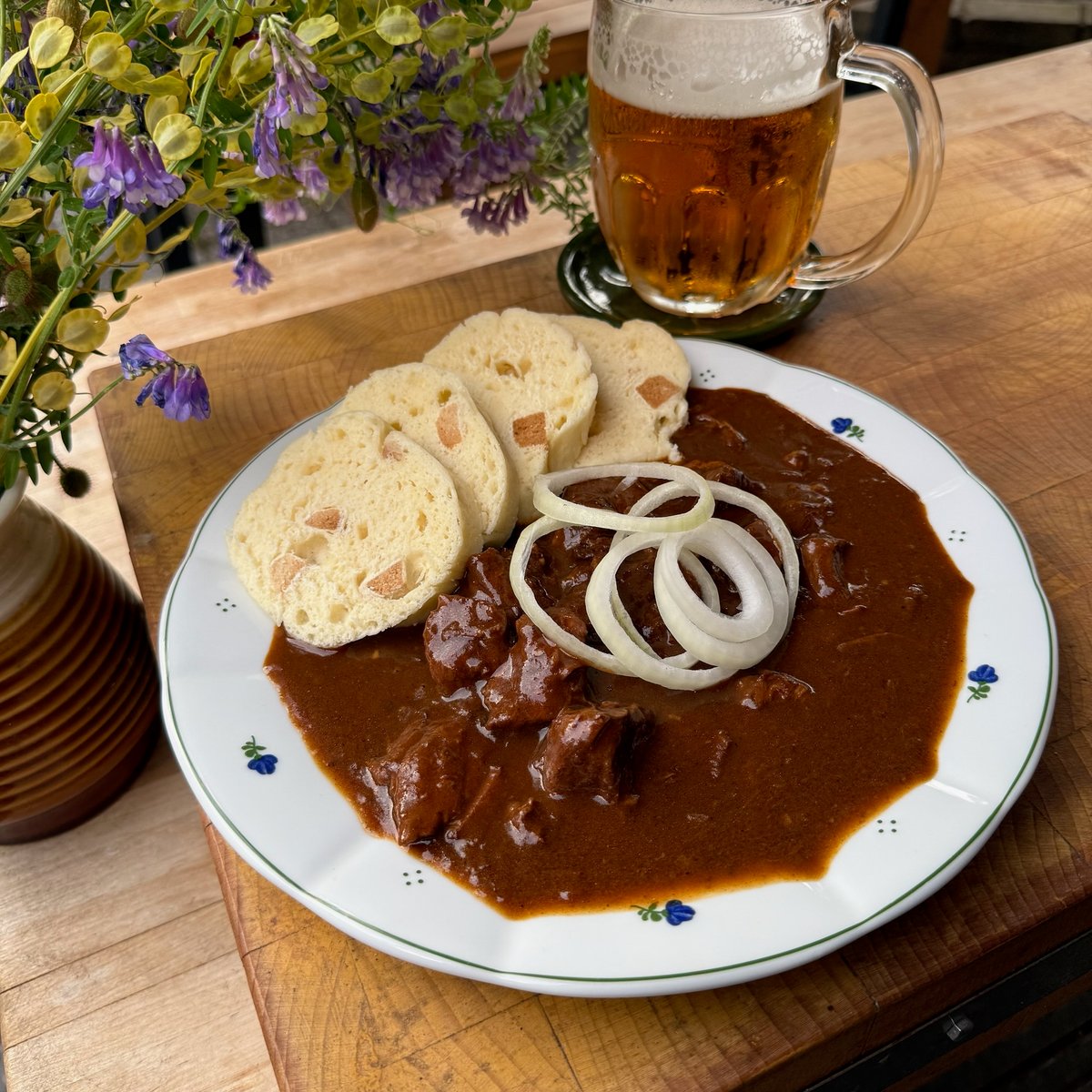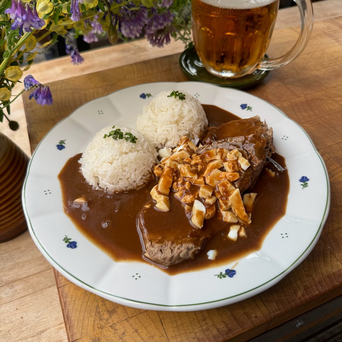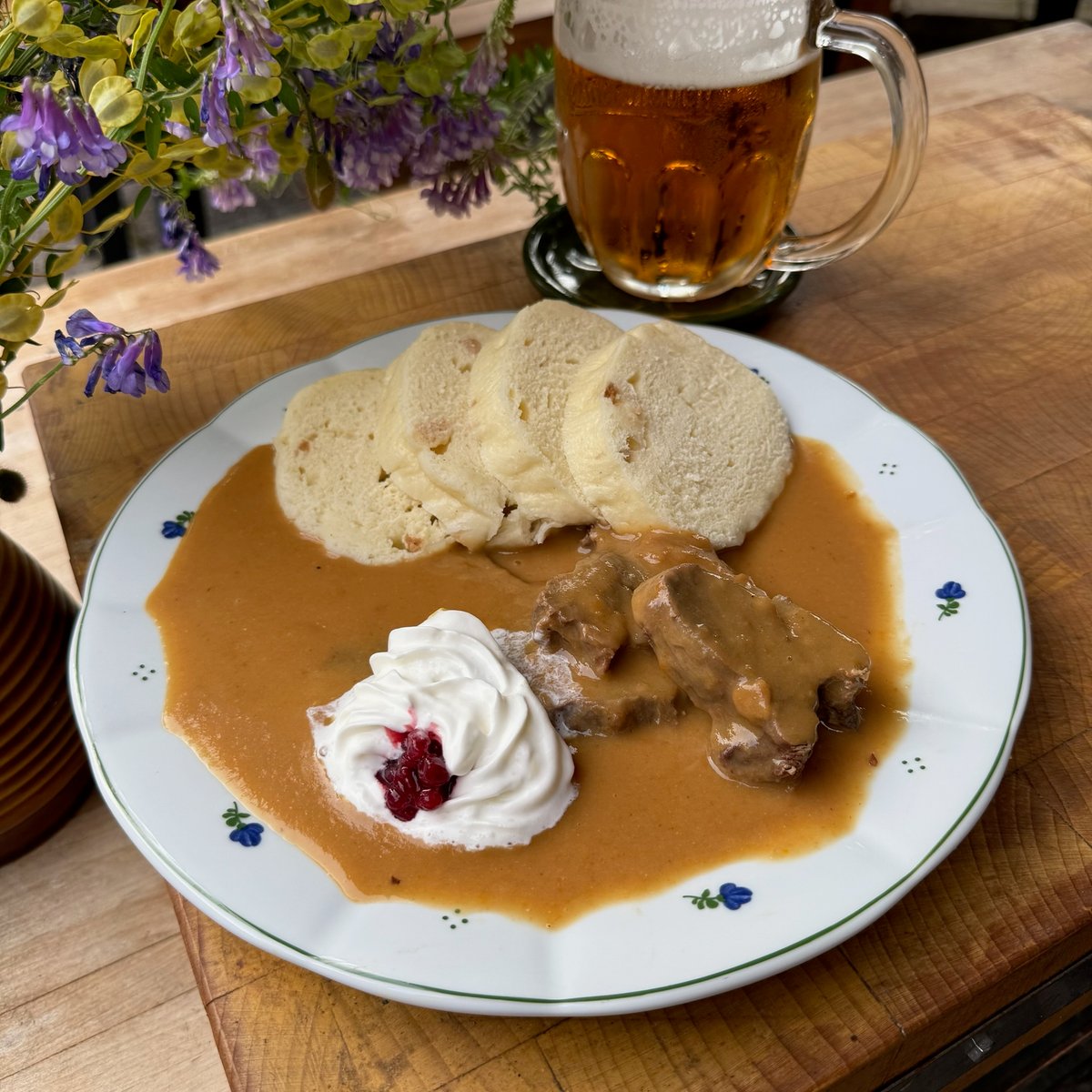 Hovězí pečeně, svíčková omáčka, houskový knedlík