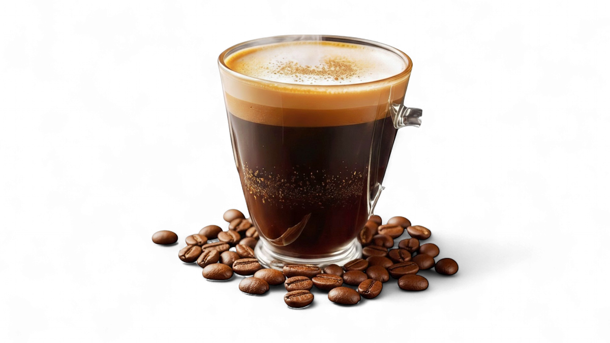 Dvojitá porce silného kafe. Double espresso s výraznou chutí.