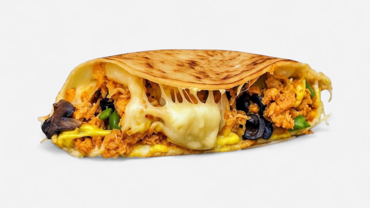 Egg, grilled vegetables, mozzarella, parsley, onion, olives, cheese sauce.