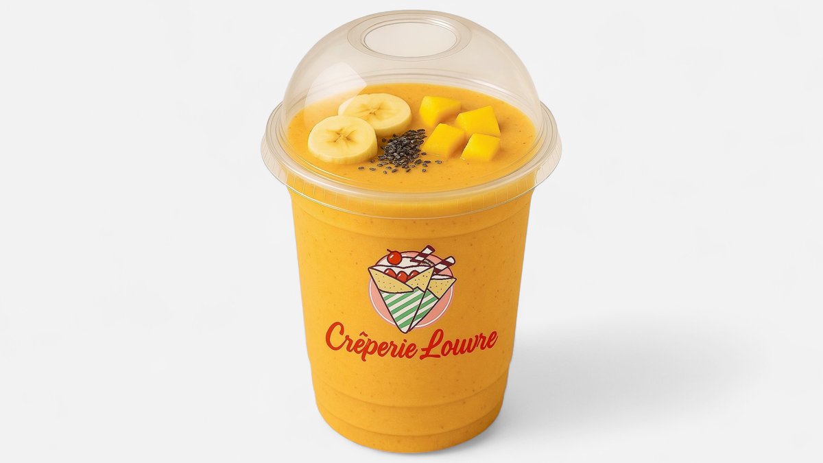 Banana, orange, mango, chia seeds, pineapple, coconut water.