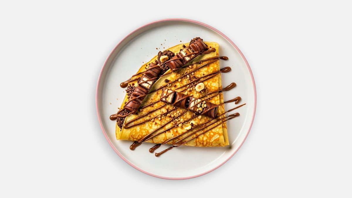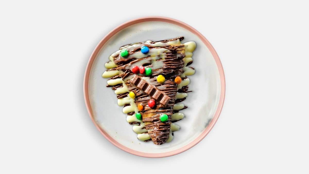 Nutella, KitKat, white chocolate, Ferrero Rocher, M&Ms, fruit of the season, banana, whipped cream.