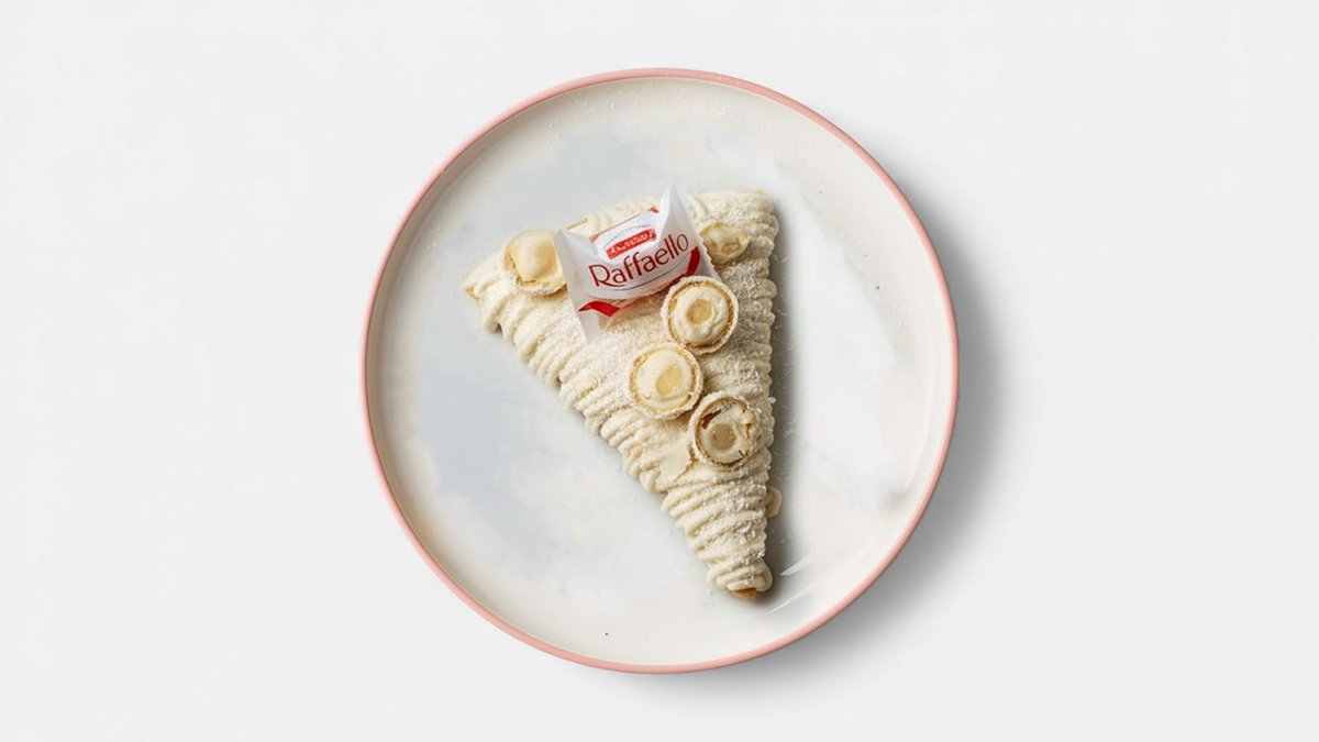 White chocolate, coconut cream, crushed almonds, Raffaello.