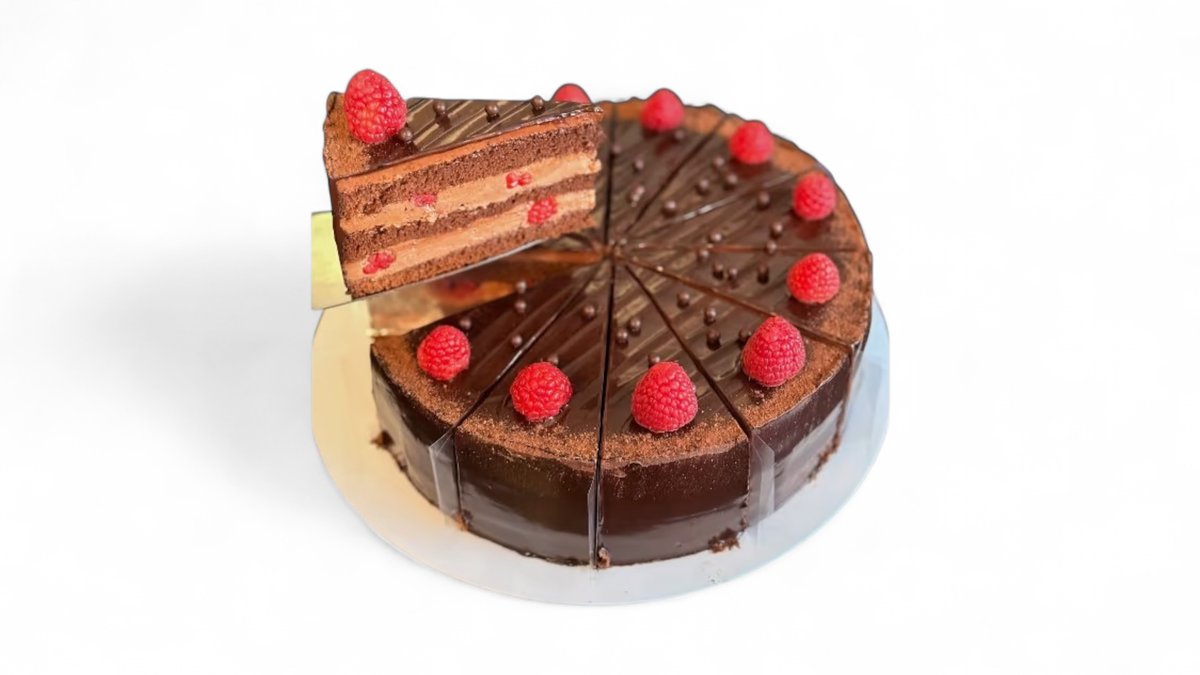 1 ks - 160g. Čokoládový piškot, jemný čokoládový krém a čerstvé maliny.