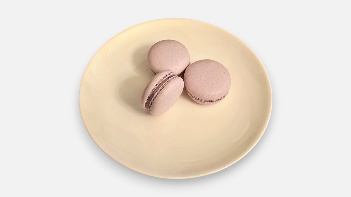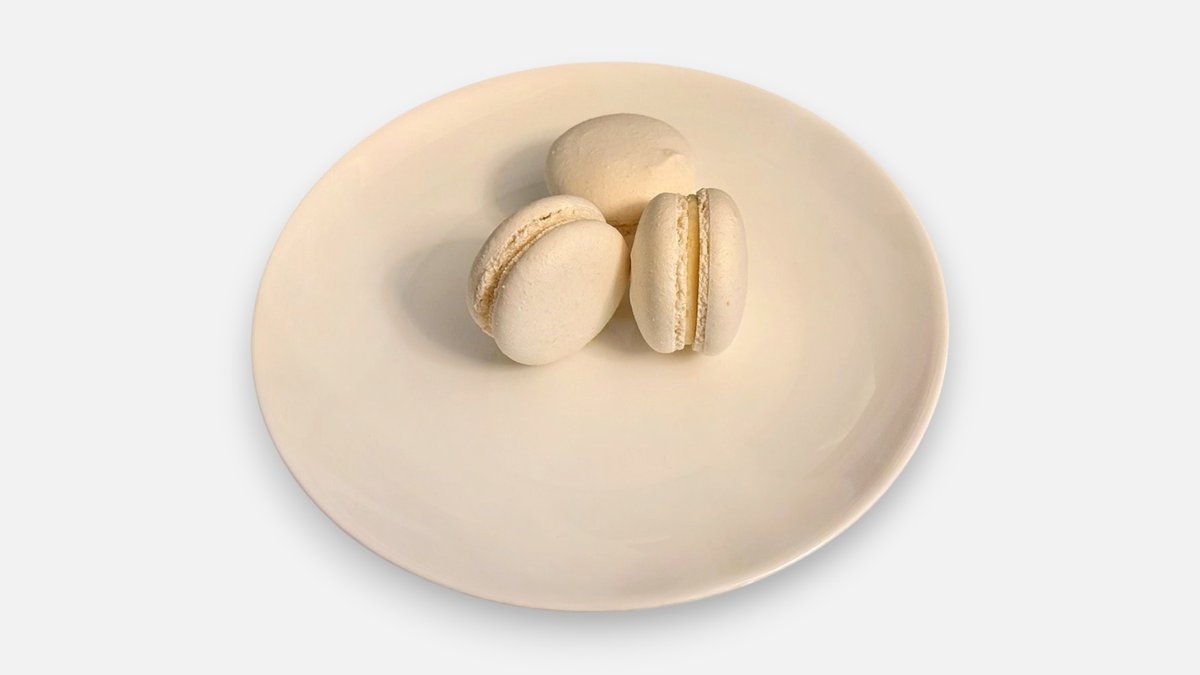 Francouzská pusinka z mandlové mouky, bílků a cukru spojená jemnou ganáží z bílé čokolády a vanilká.