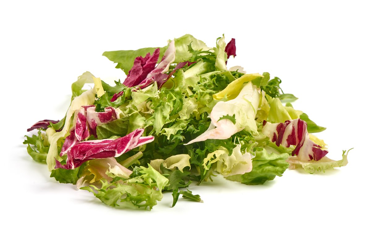 zeleninový salát s kousky grilovaného kuřete marinovaného v tikka omáčce