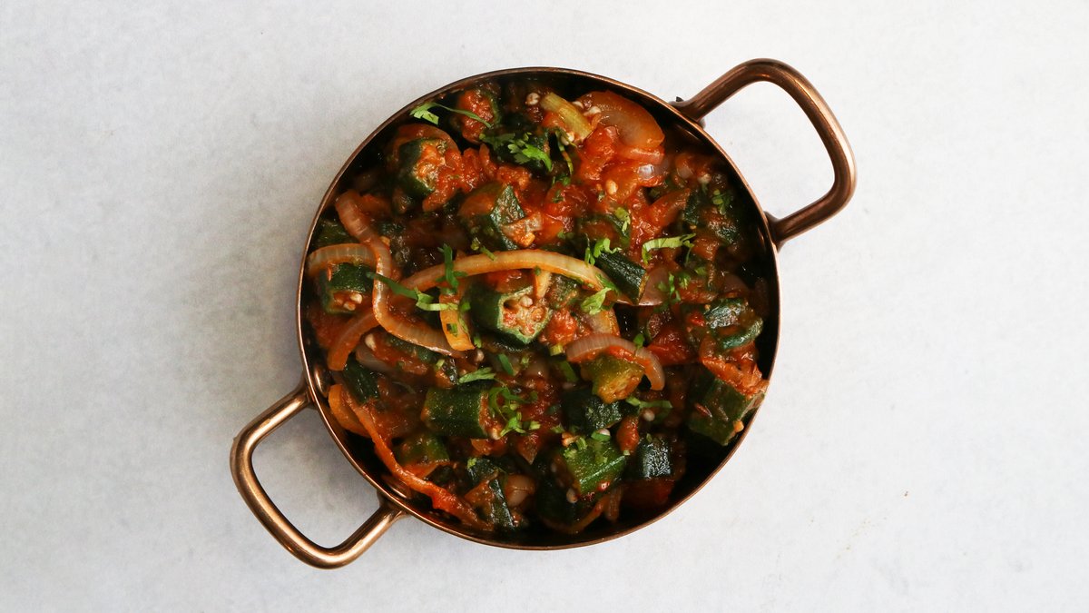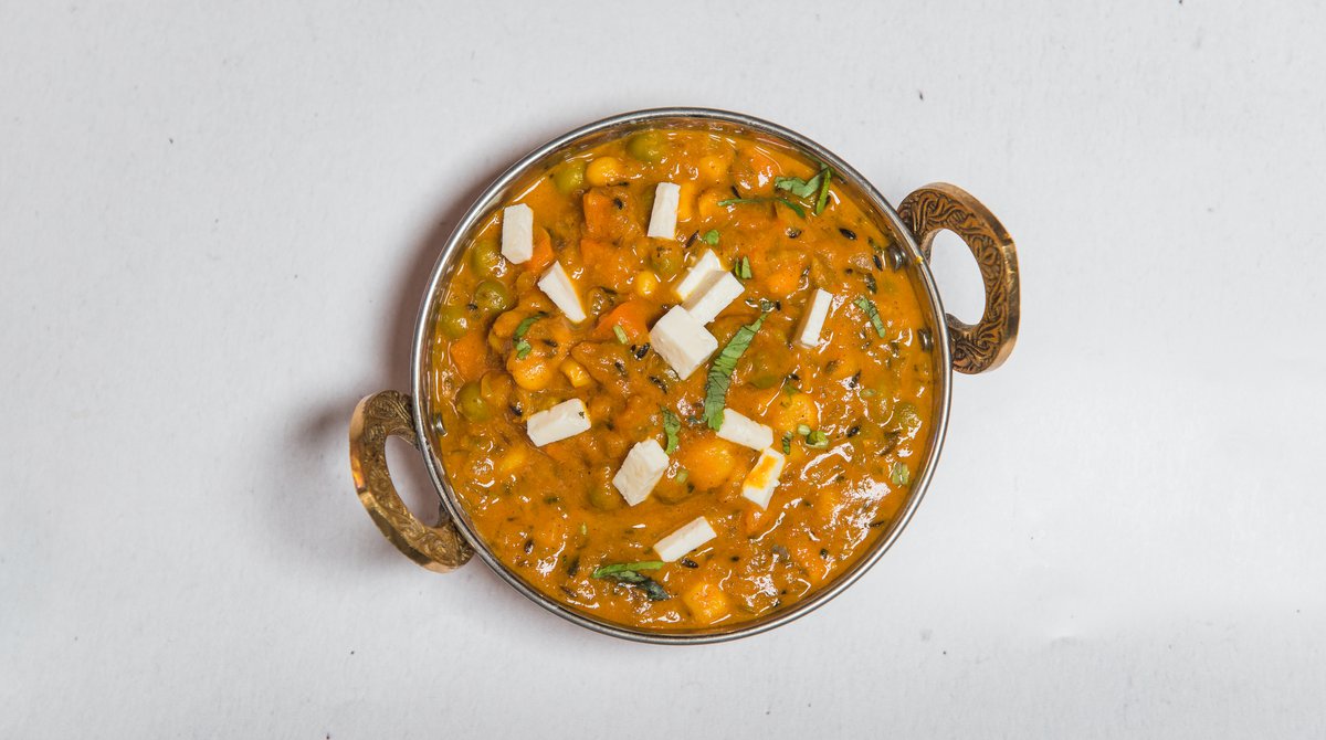 sezónní čerstvá zelenina vařená se zázvorem, česnekem a masala omáčkou