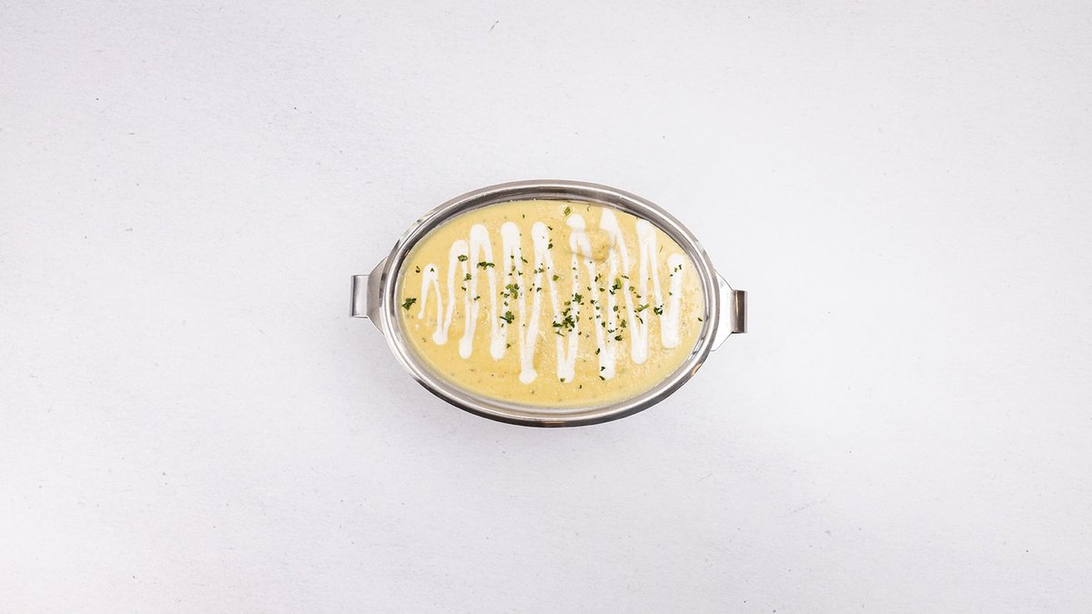 kulička z brambor a sýru v bohaté krémové jemné omáčce se sladkou cibulí a rajčaty