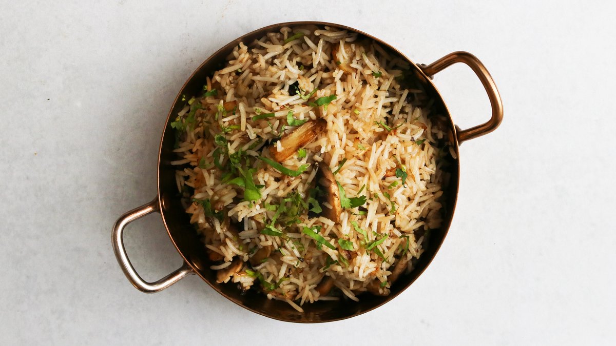 basmati rýže s vykostěným kuřecím masem, muškátovým květem, kardamonem a speciálním kořením