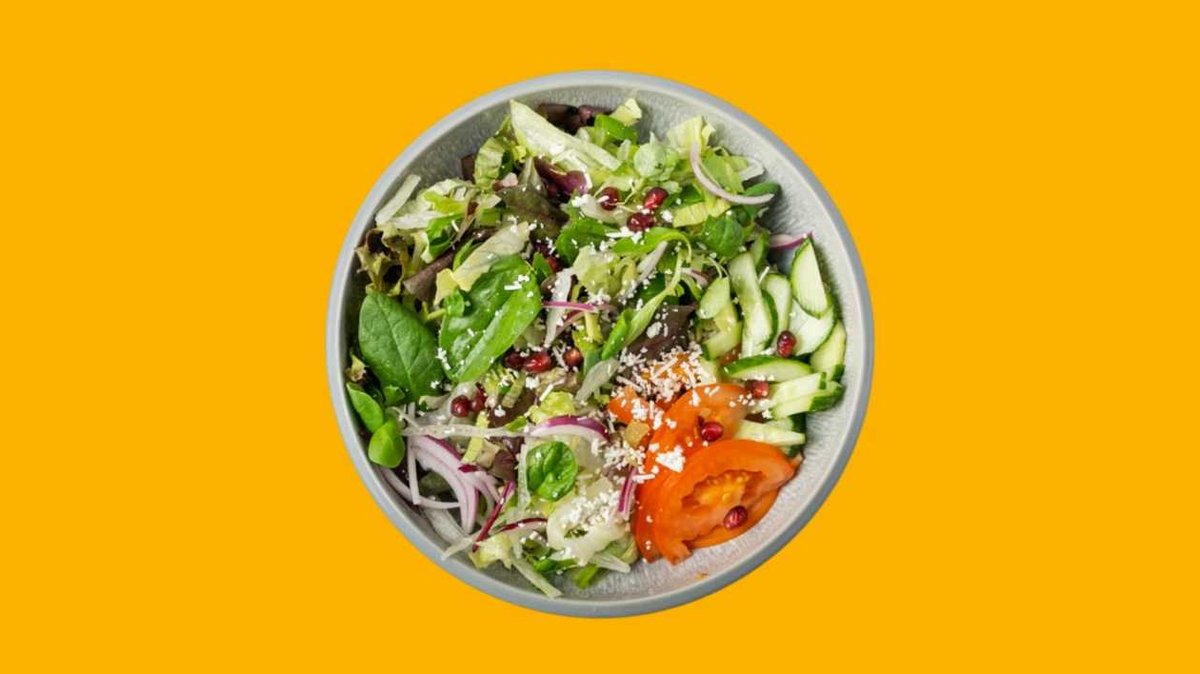 čerstvý salát s granátovým jablkem a jemným balkánským sýrem