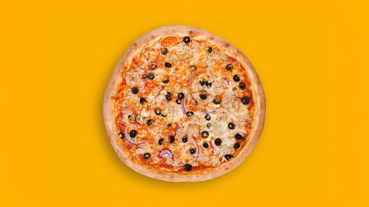 tomato, mozzarella, tuňák, cibule, olivy (1,3,4,7)