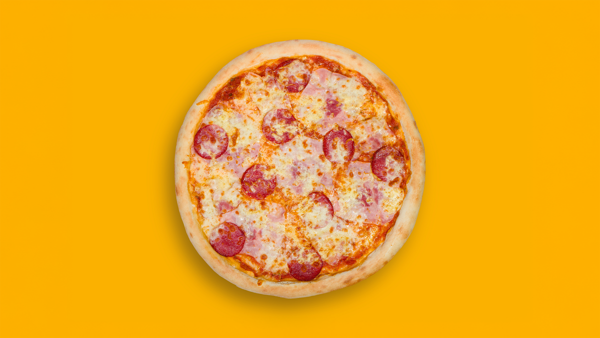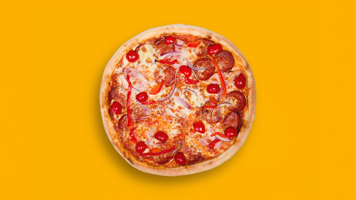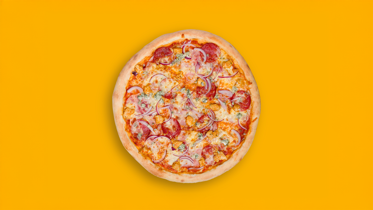 pomodoro, mozzarella, kuřecí maso, šunka, slanina, salám, cibule, niva. alergeny (1,3,7)