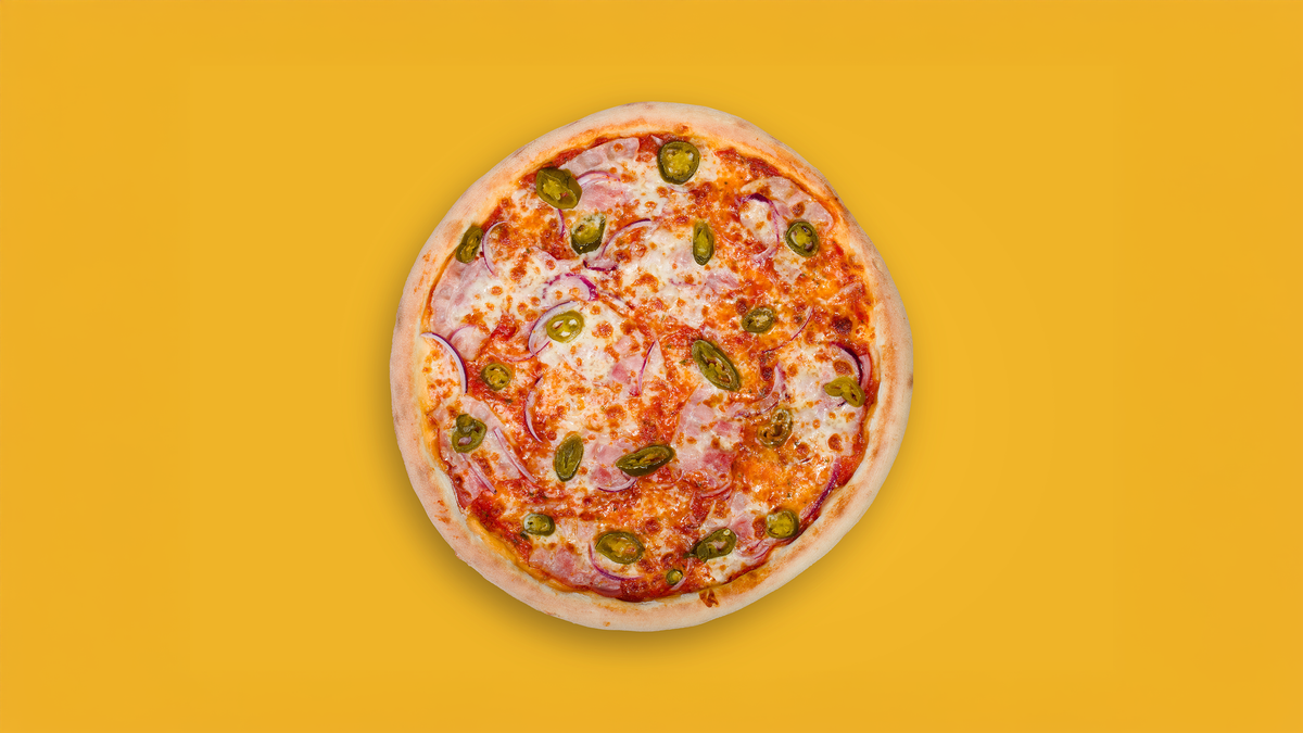 tomato, mozzarella, anglická slanina, jalapeños, cibule (1,3,7)